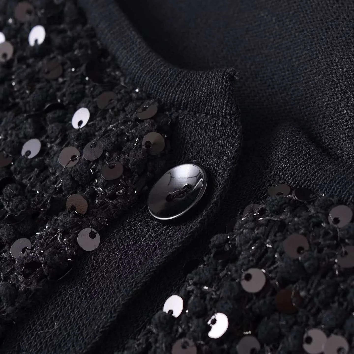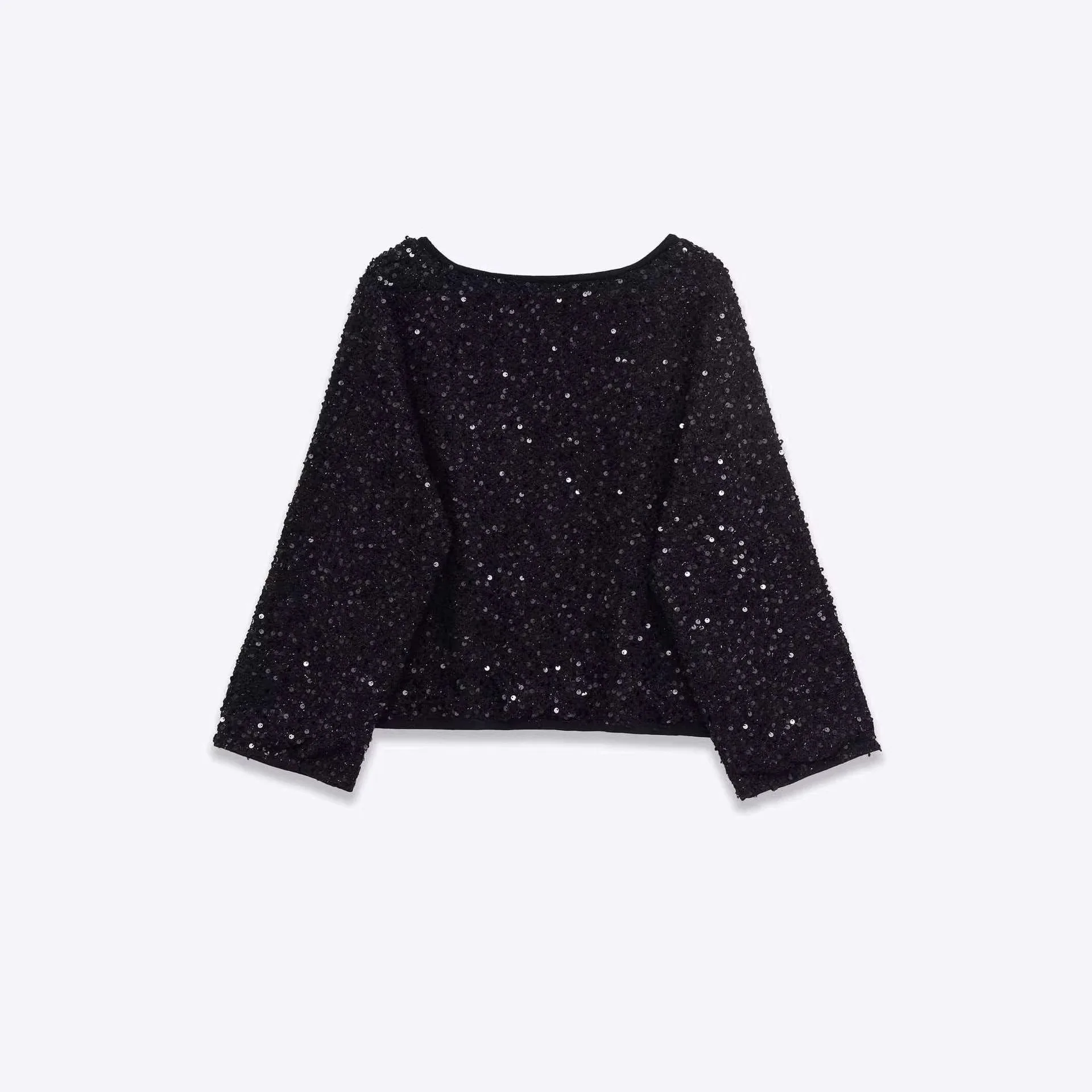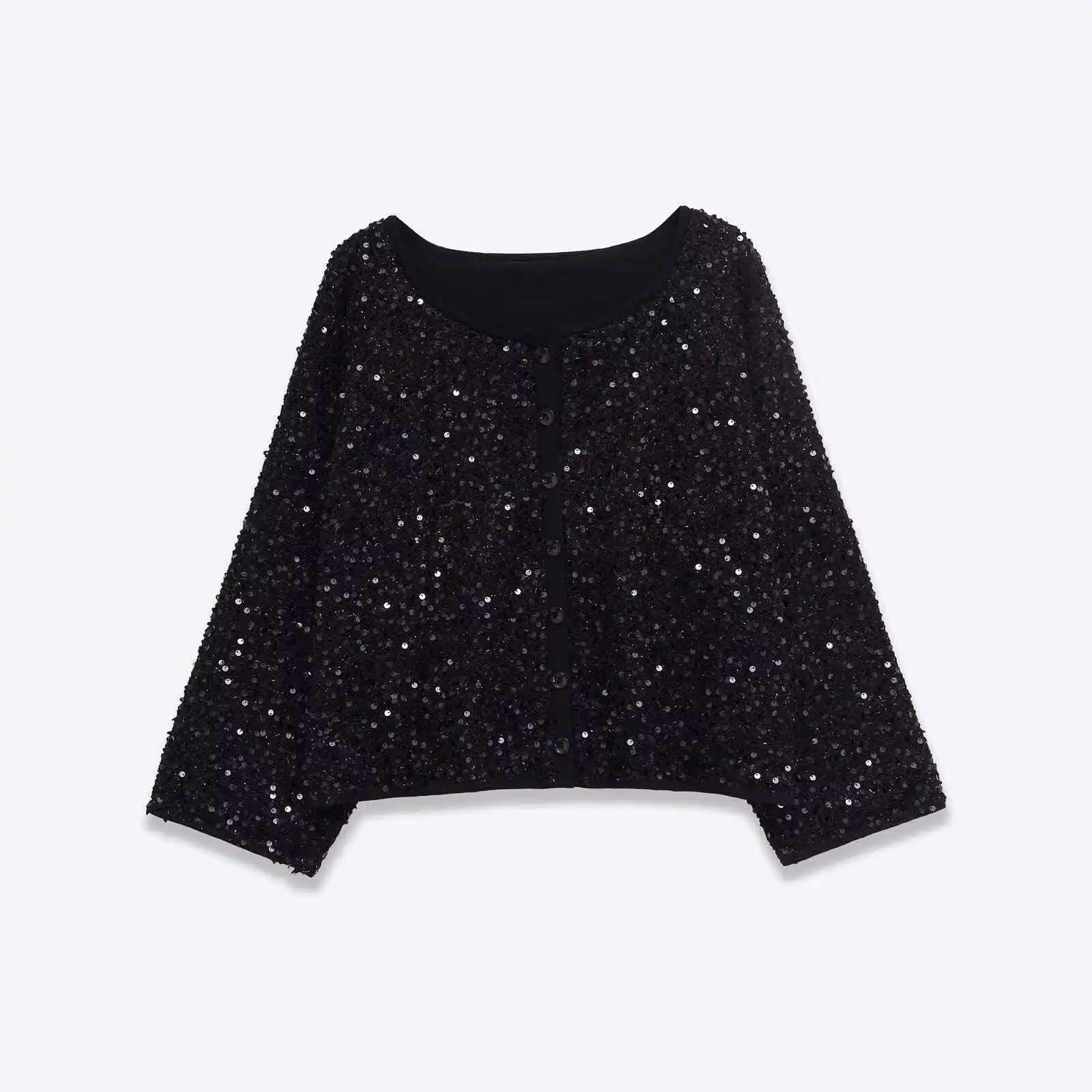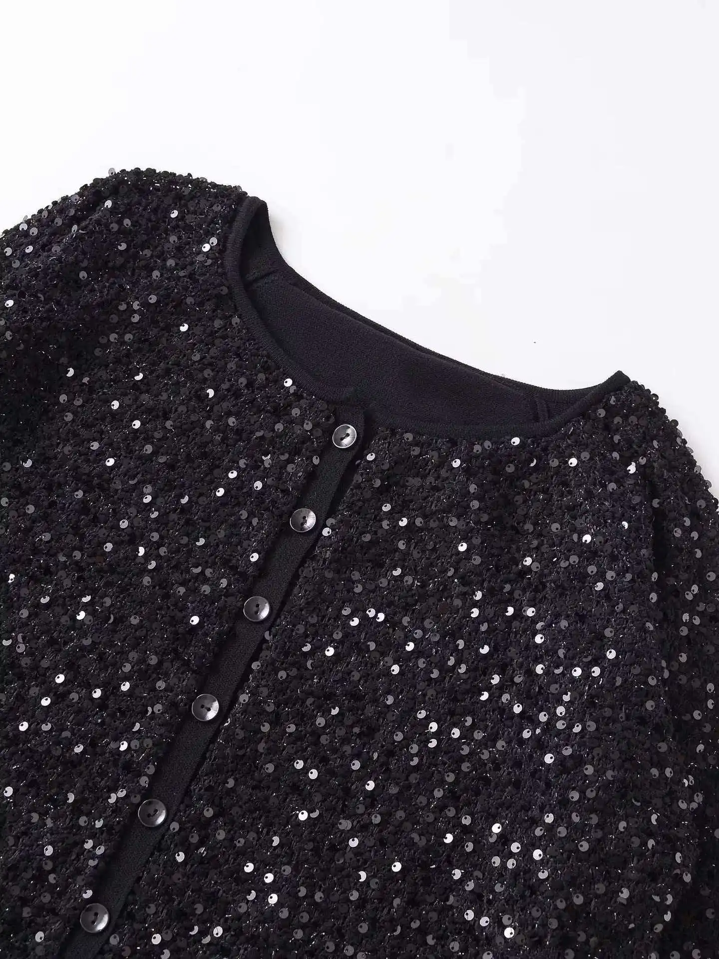 Cross-border European American Foreign Trade Women's Explosive Neck Sequins Polyester Crewneck Single Breasted Casual Long