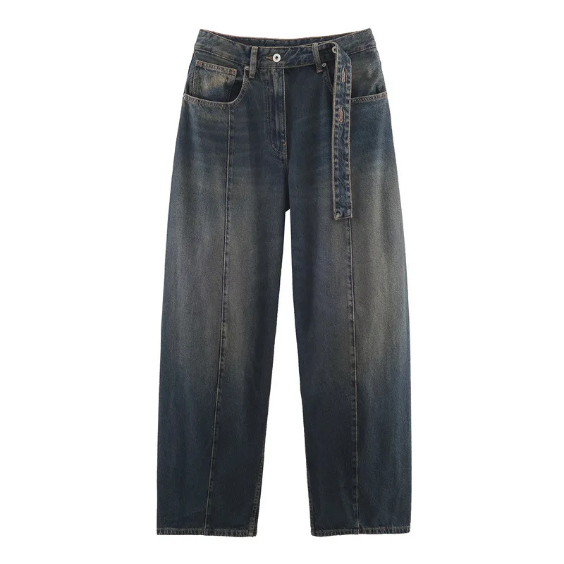 Foreign Trade Wholesale New Women's Loose Streetwear Winter Old Low Waist Straight-leg Denim Jeans