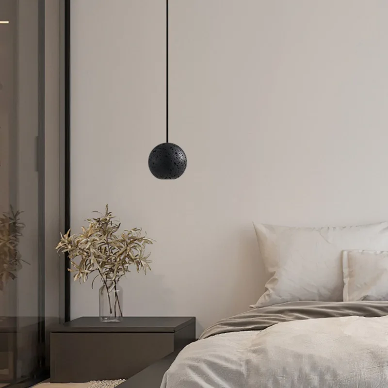JACKSUN Wabi Sabi High-End Black LED Drop Light Circular Pendant for Bedroom Bedside Minimalist Chandeliers Pendant Lights
