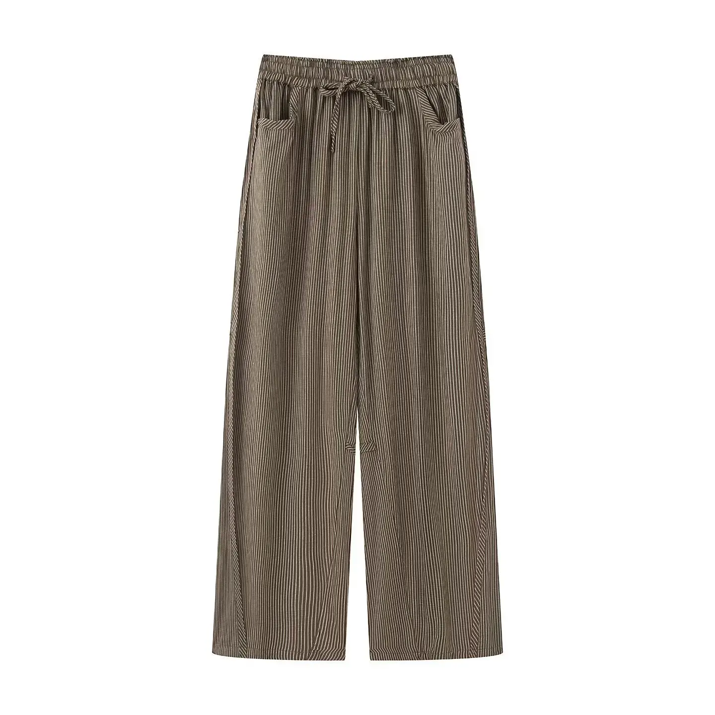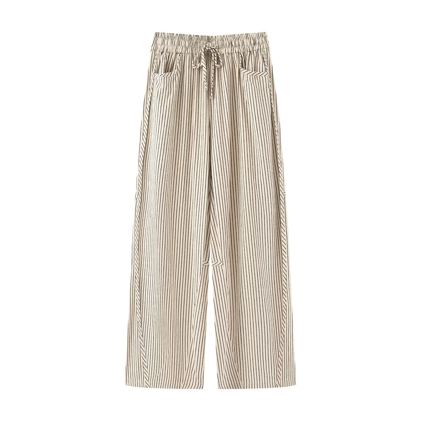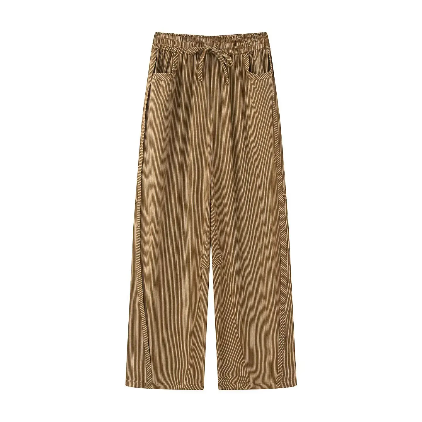 Cross-border Wholesale Autumn New Women's Clothing European and American Bohemian Fashion Striped Tooling Straight Casual Pants