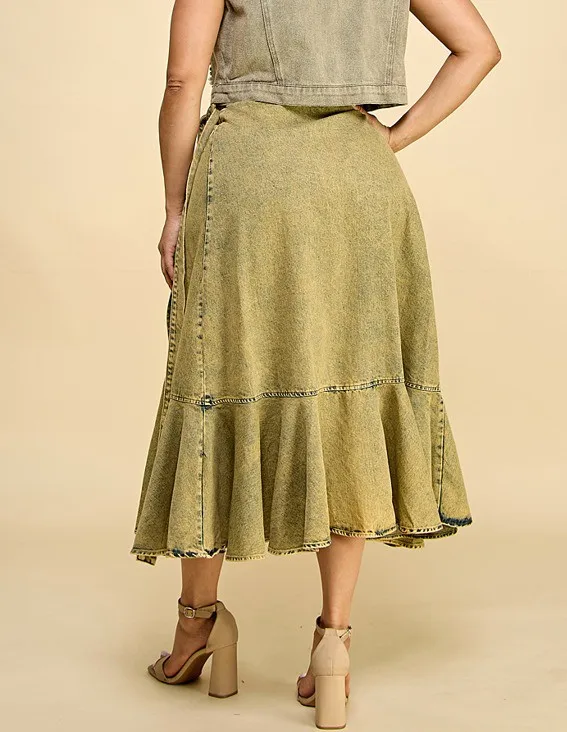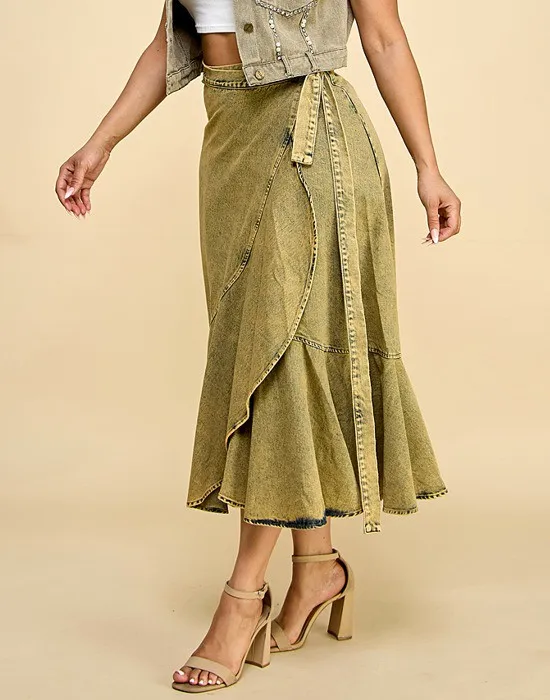 Women's High-waist Denim Skirt Gold Distressed Asymmetric Hem Belt Casual Style for Summer/Autumn French Dates/Art Exhibitions