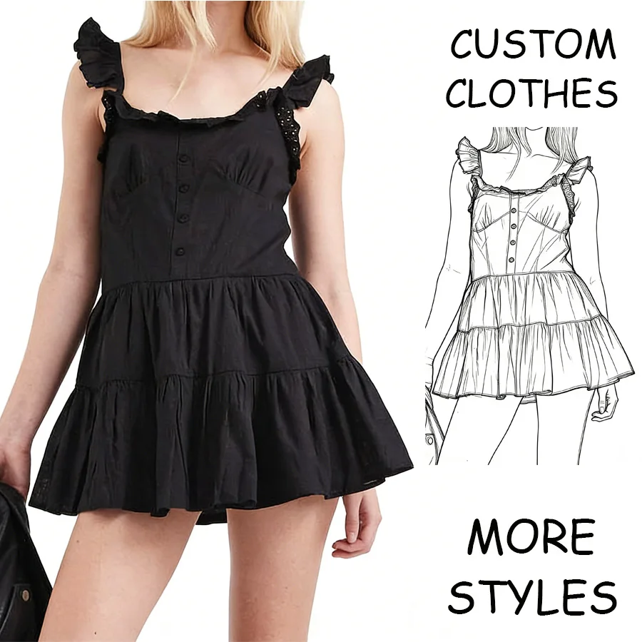 Custom Women's Sexy 100% Cotton Halter Neck Loose Fit Mini Dresses Women Casual Sleeveless Pleated Eco-Friendly Summer Yegao