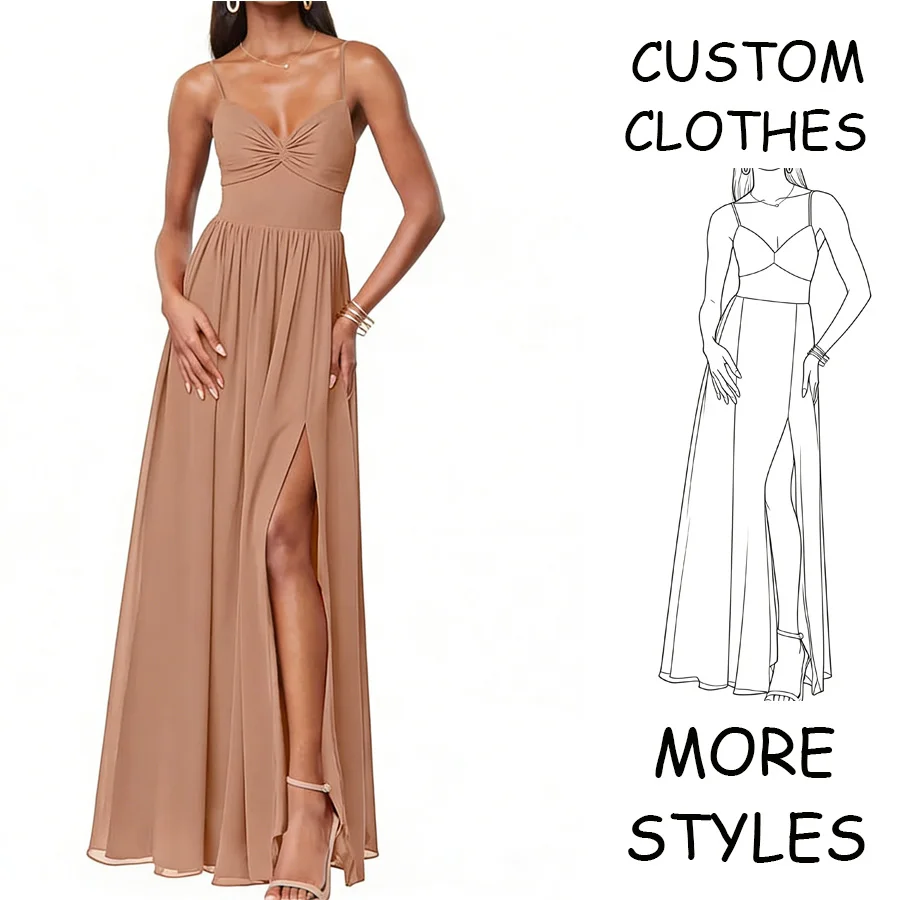 Custom Maxi A-Line Halter Neck Sleeveless Chiffon Dresses Women Casual with Lace Ruffles Slit Eco-Friendly & Breathable Fabric