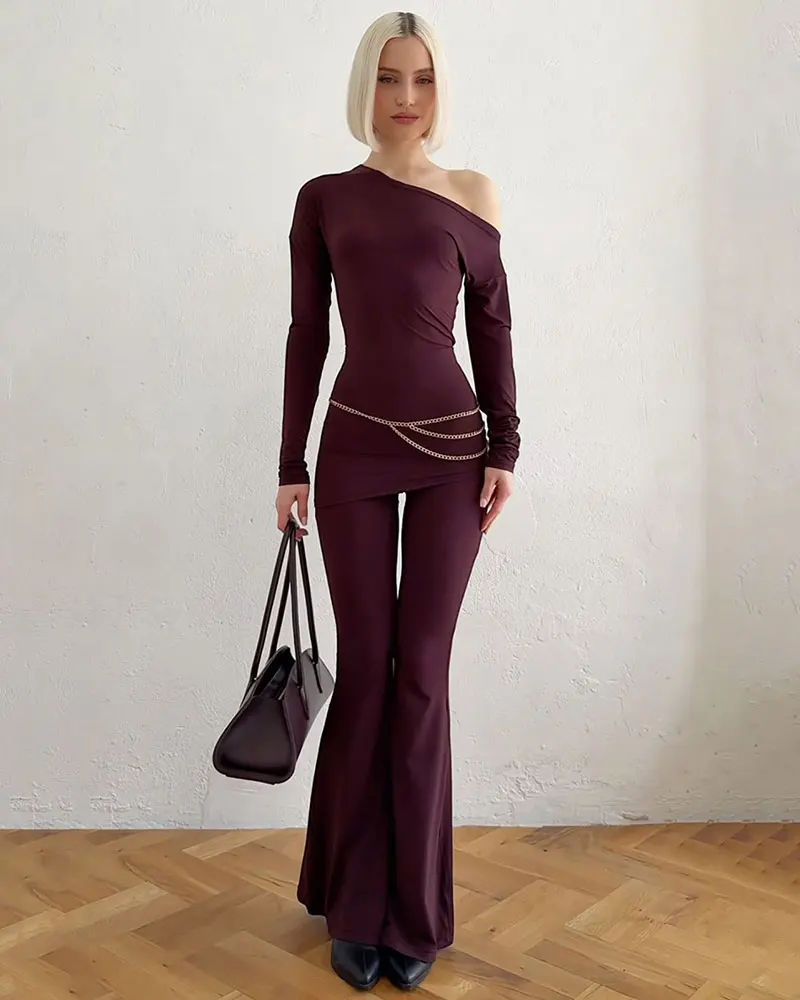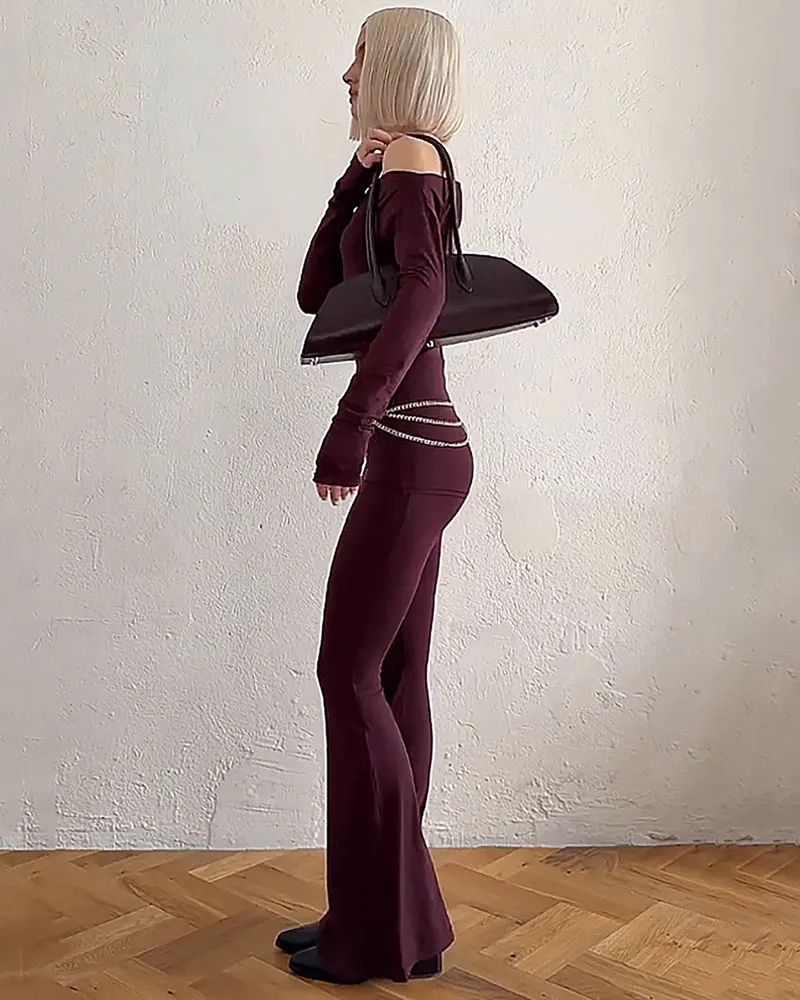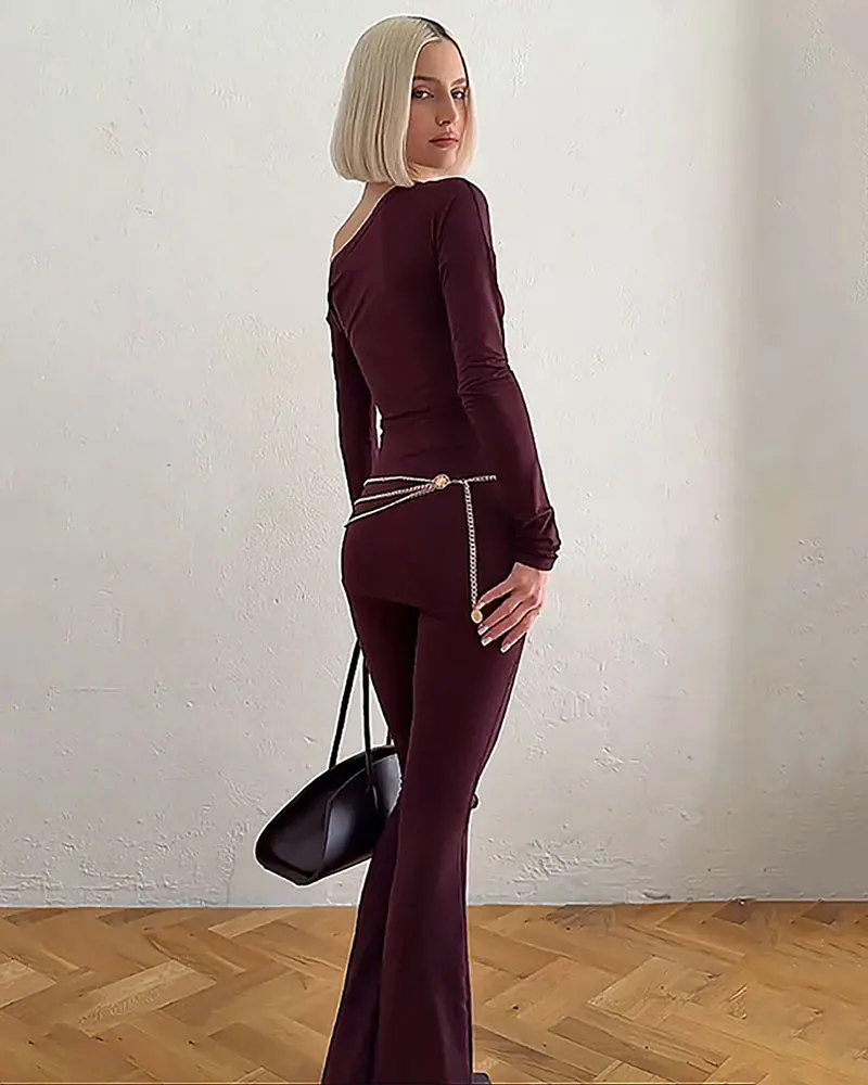 Sexy Two Piece Pant Set Women Long Sleeve Top Shirt and Flared Pants Casual Streetwear Ladies Trouser Matching Sets