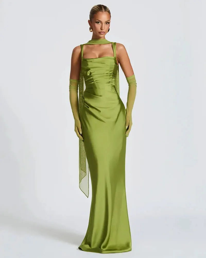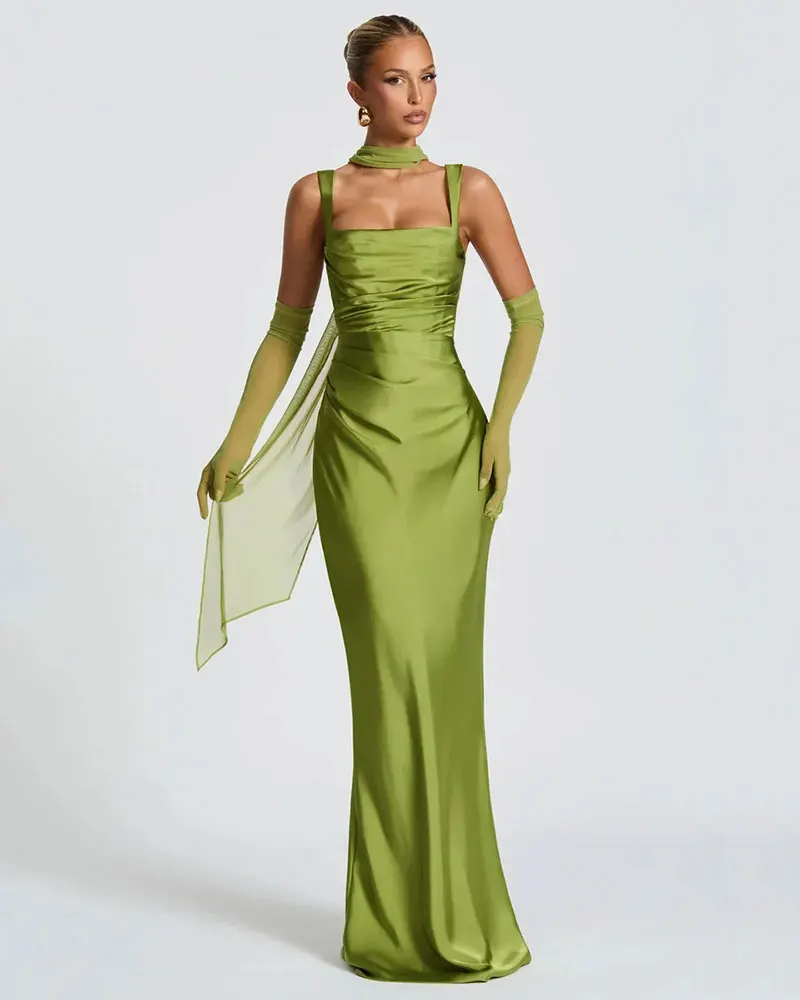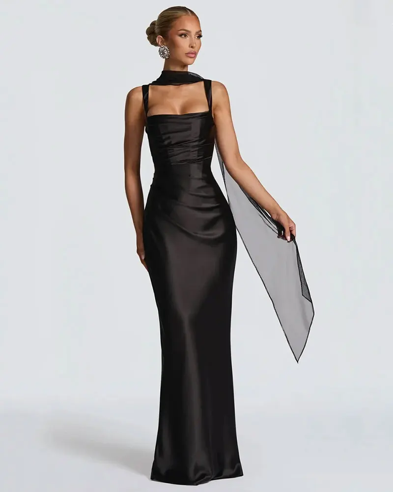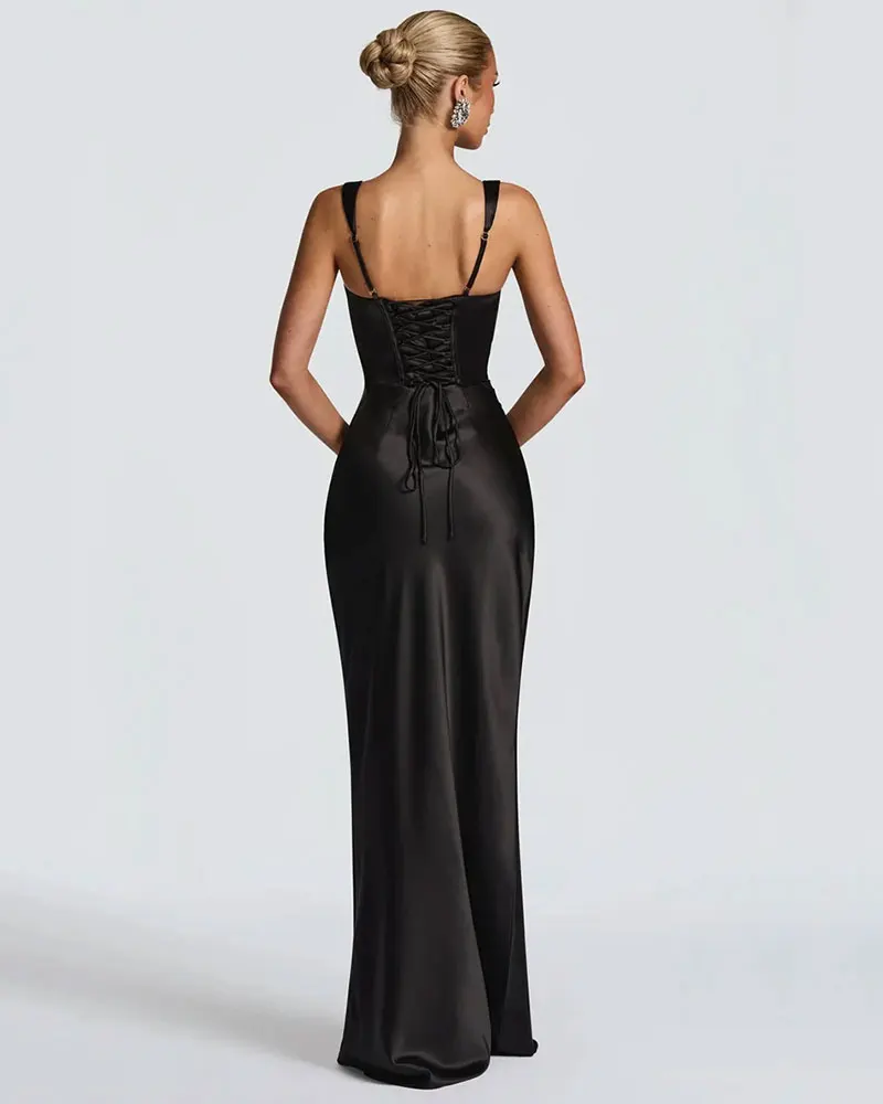 Satin Backless Sexy Maxi Dress Women Elegant Halter Off-shoulder Sleeveless Back Lace-up Bodycon Club Party Long Dresses