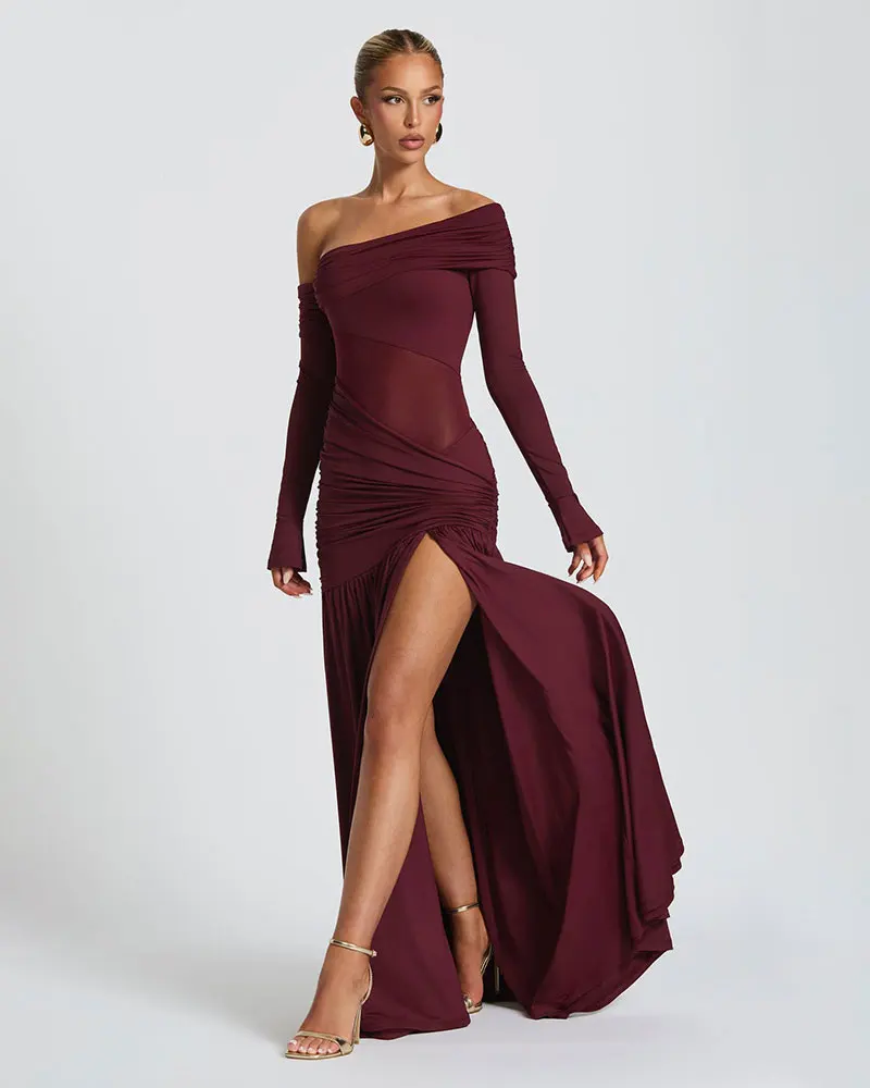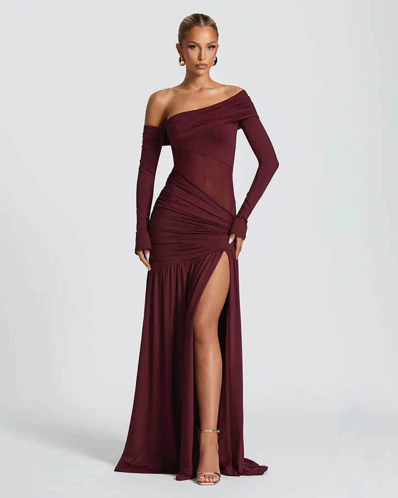 Off-shoulder Sexy Maxi Dress for Women New Gown Fashion Skew Collar Backless Thigh High Split Club Party Long Dress