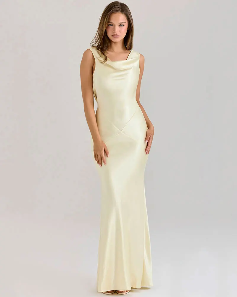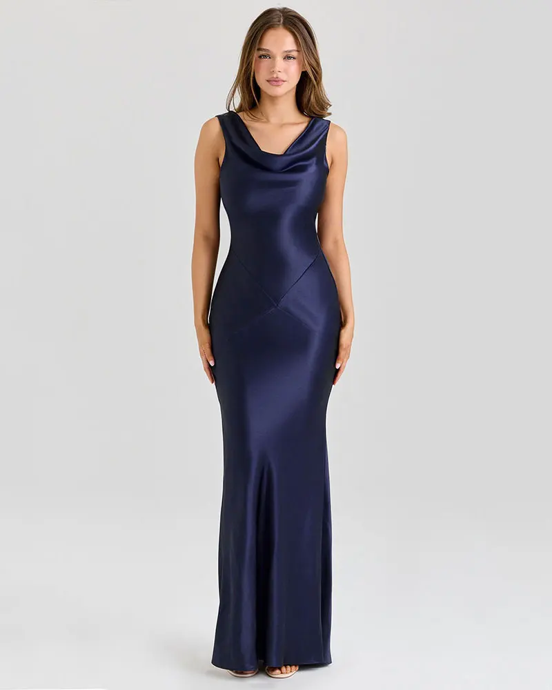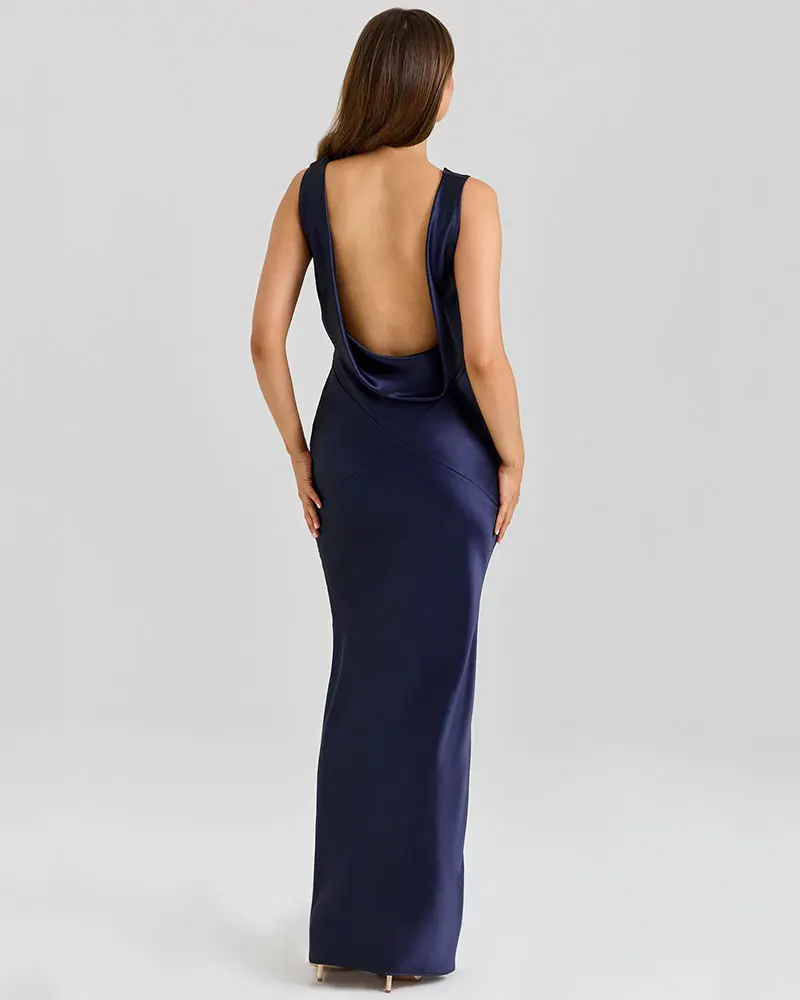Elegant Satin Maxi Dress for Women Summer Sleeveless Backless Robe Gown Club Party Evening Sexy Bodycon Long Dress