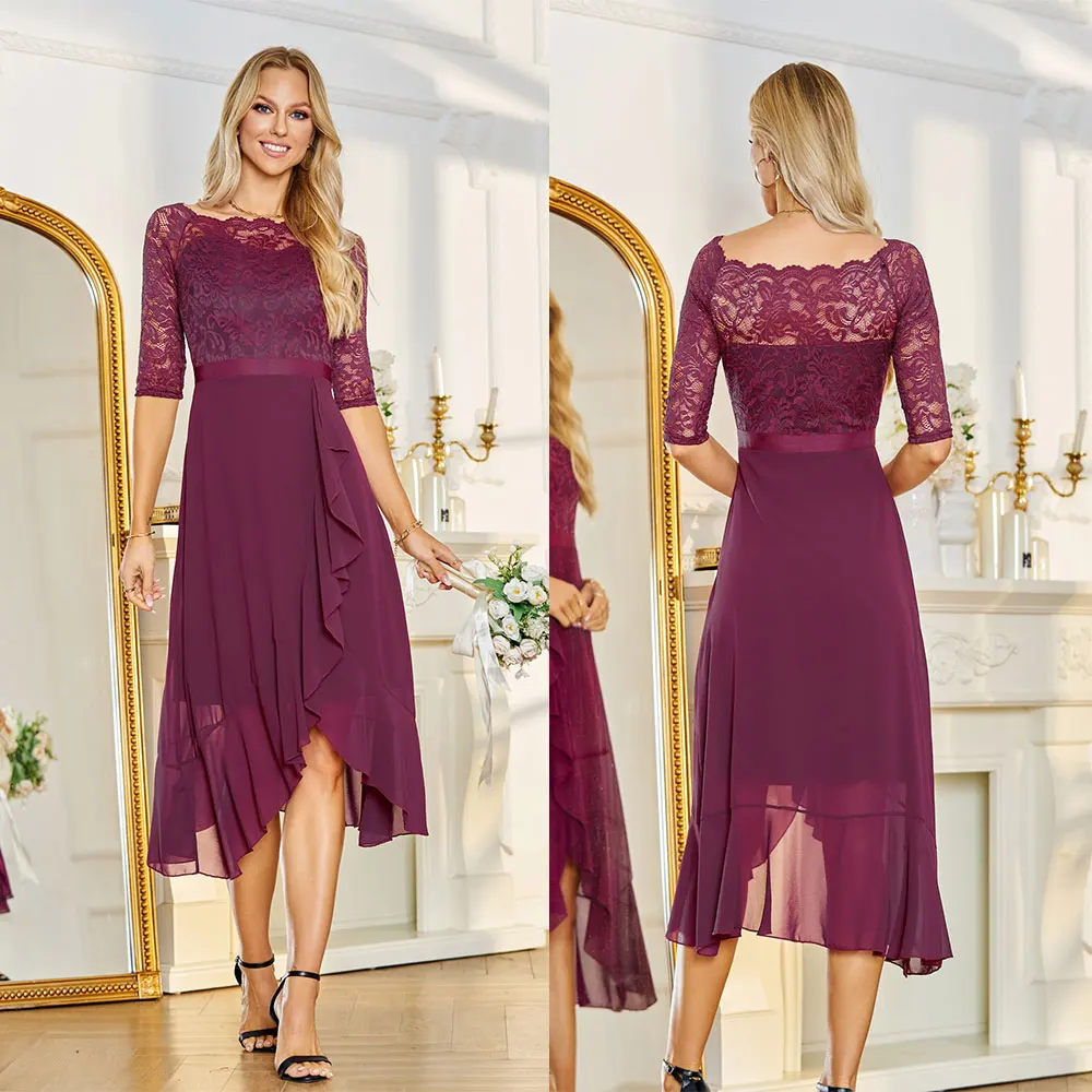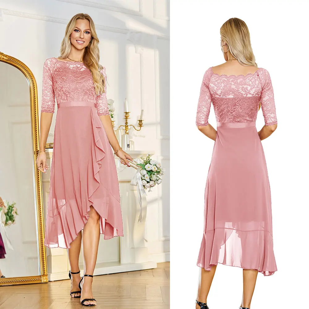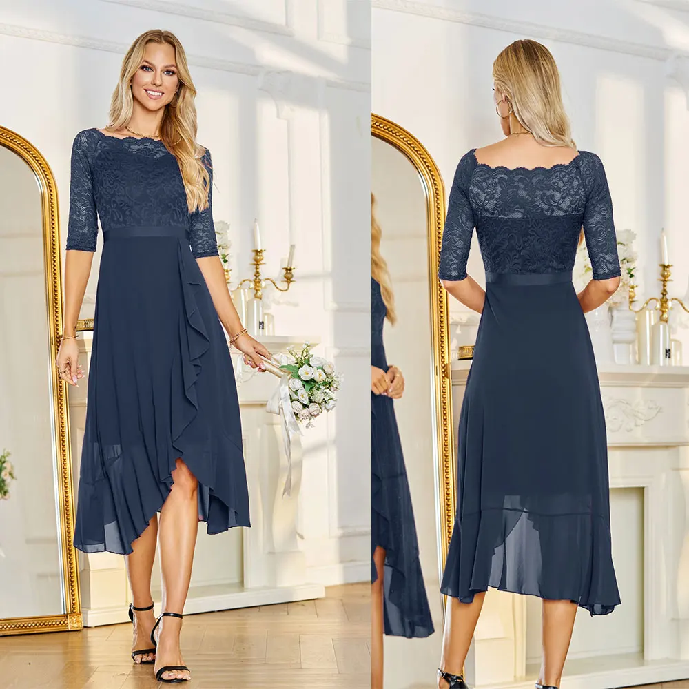 Custom Clothing Women's Dress Breathable Chiffon 1/2 Sleeve Lace Chiffon Midi Casual Clothes Women Dresses Manufacturer