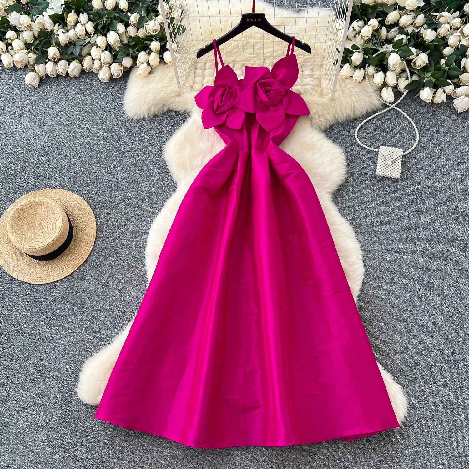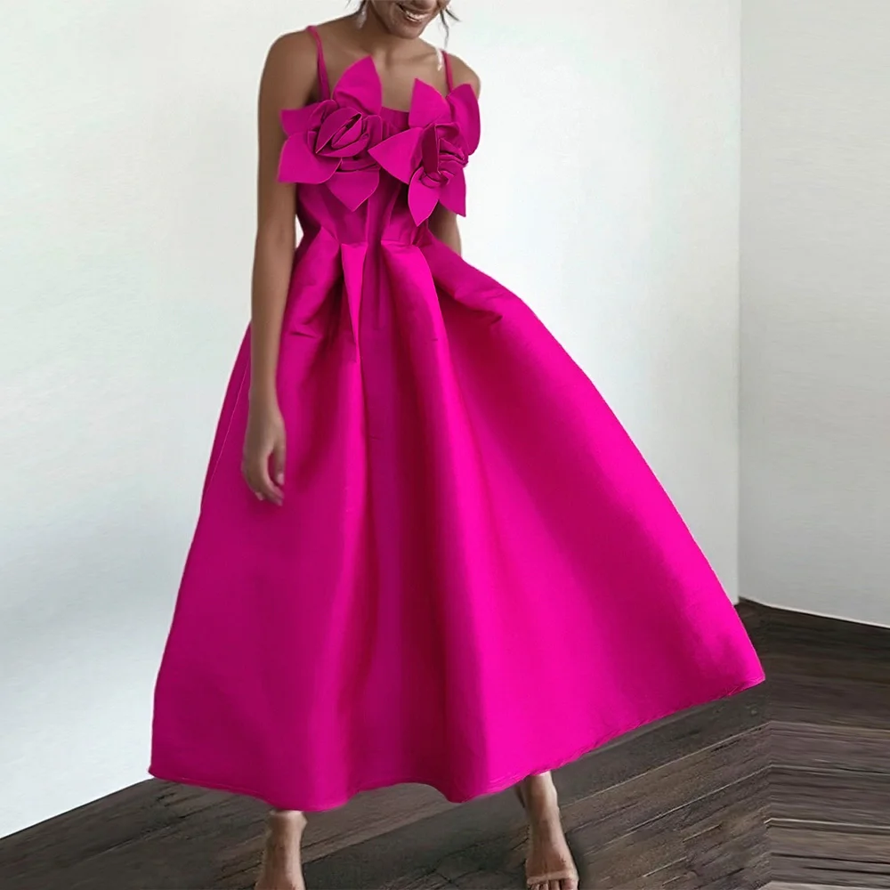 Custom Summer Roman Tunic Slim Ladies Sleeveless 3D Flower Designer A-Line Elegant Luxury Evening Party Casual Dresses for Women