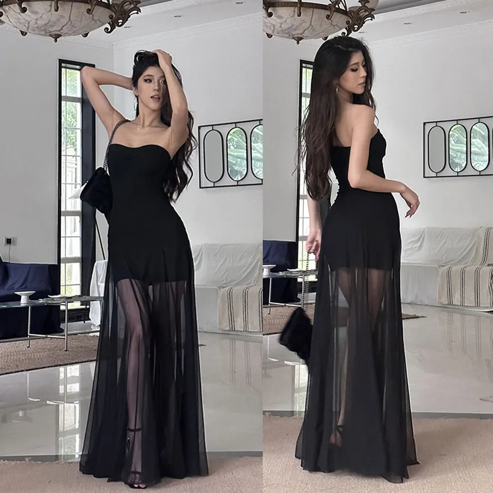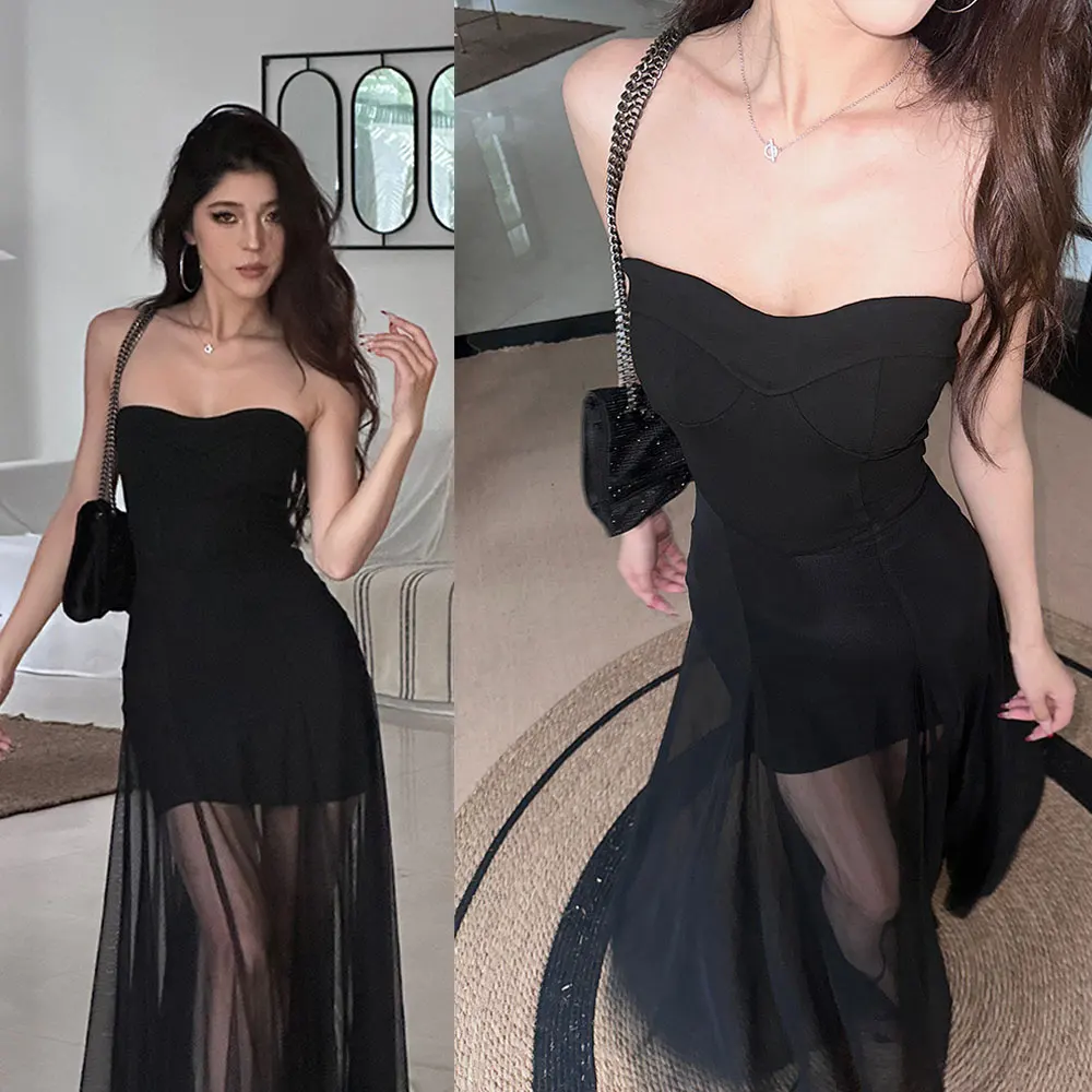 Custom Fashion Elegant Nightclub Party Women's Sleeveless Dress High Waist Mesh Bodycon Dresses for Ladies Clothing