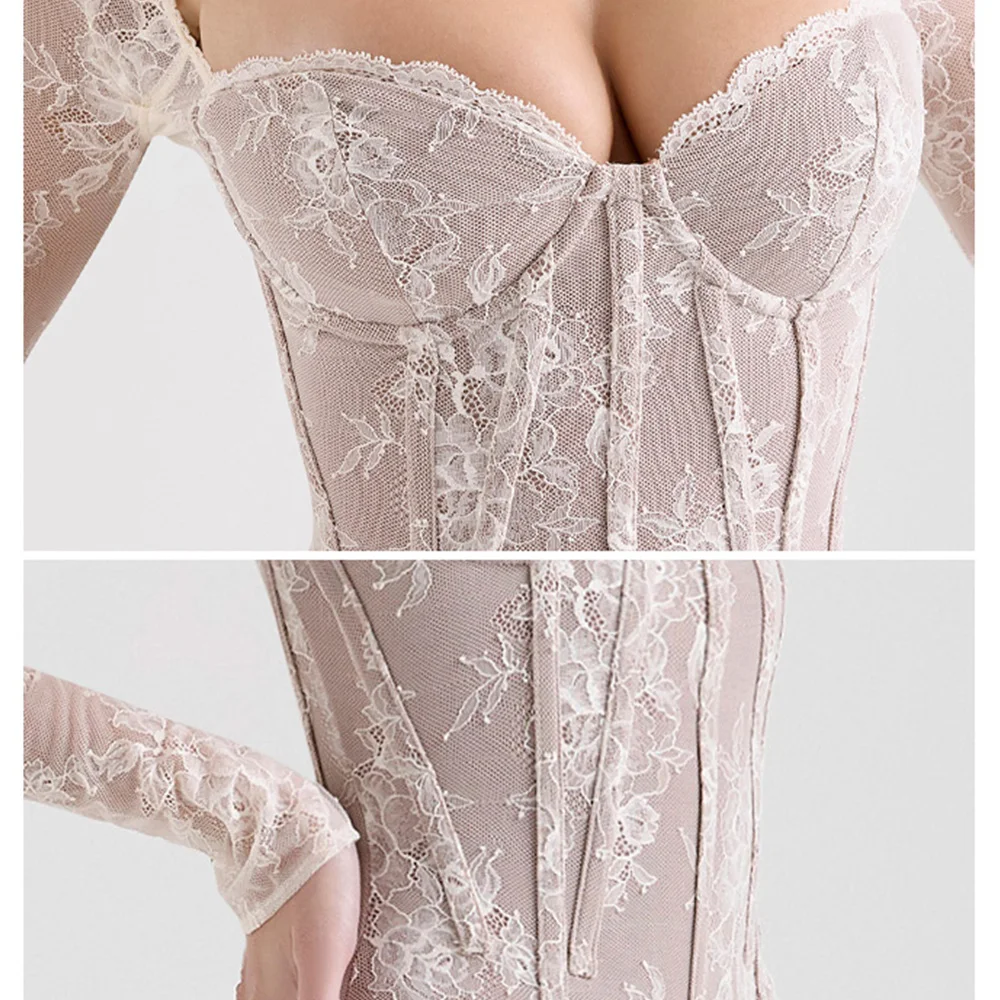 ZYHT 15325 Wholesale Spring Trendy Fashion Long Sleeve Dinner White Lace Black Velvet Elegant Party Dress Women Evening Dresses