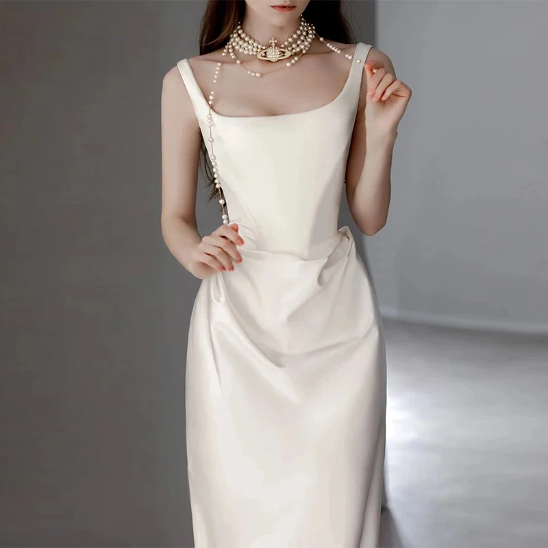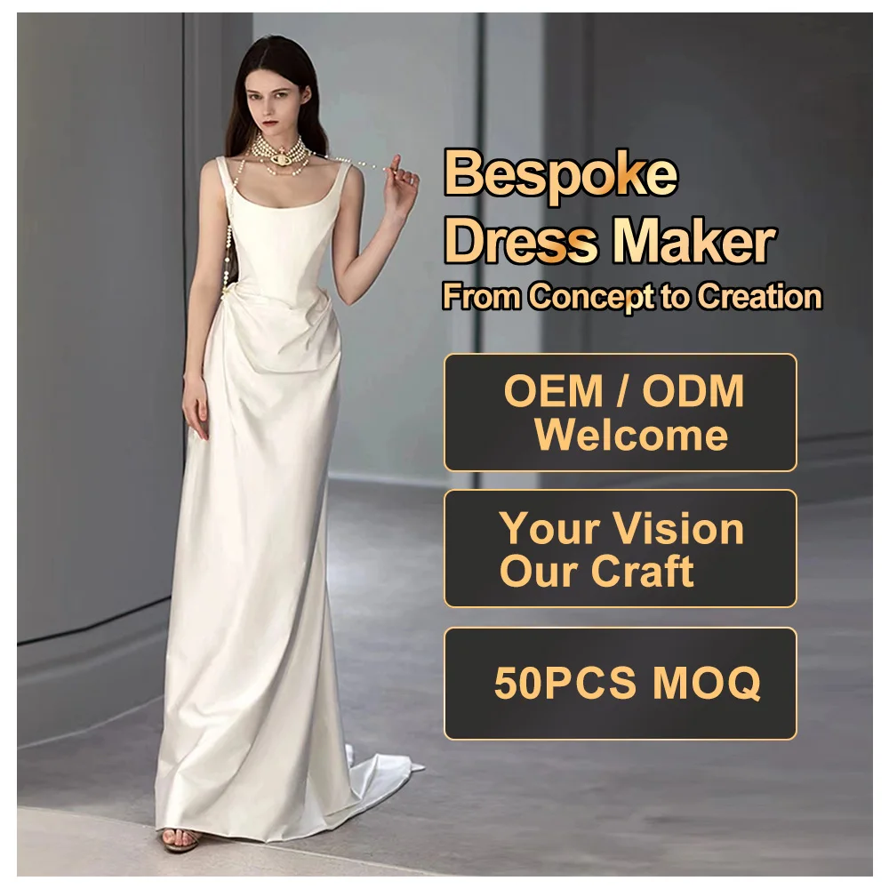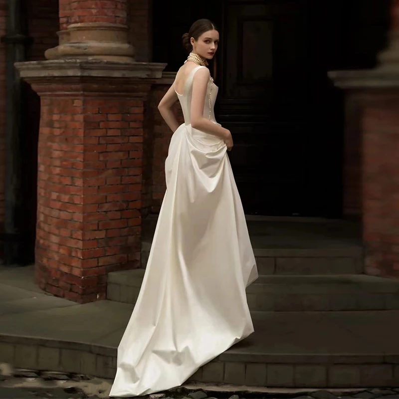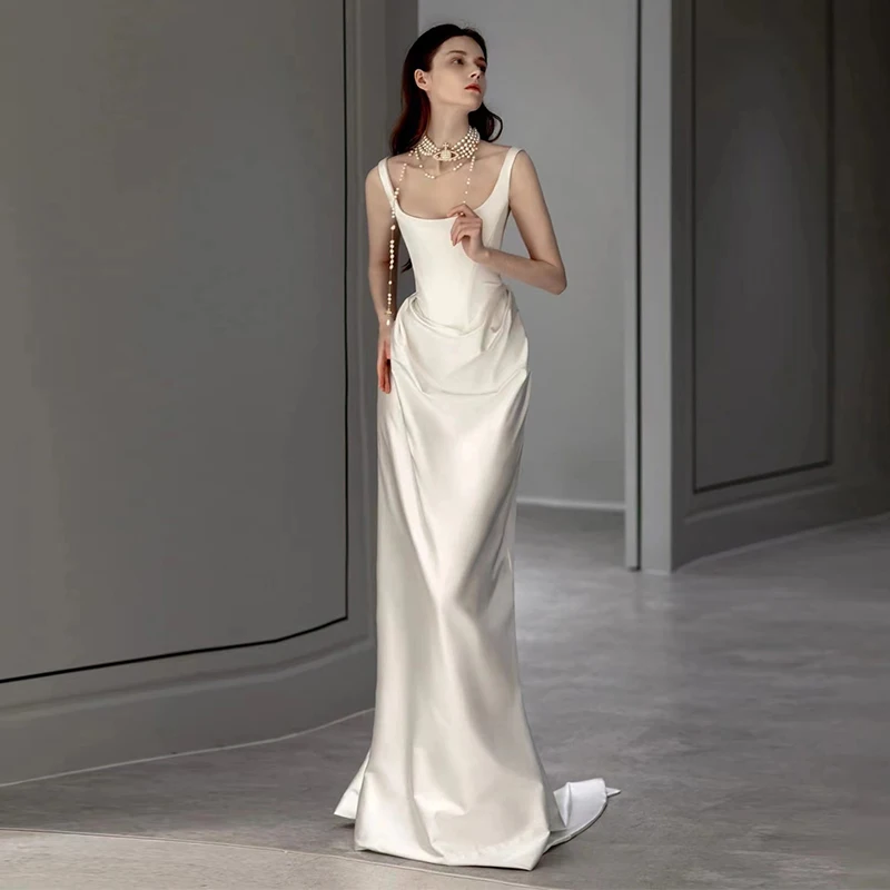 Custom White Dresses for Women Elegant Satin Light Floor Length Wedding Luxury Dresses Empire Waistline Formal Modest Gowns