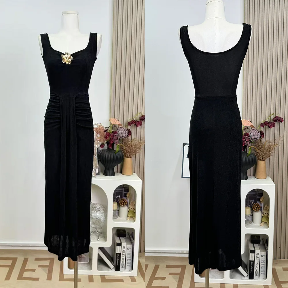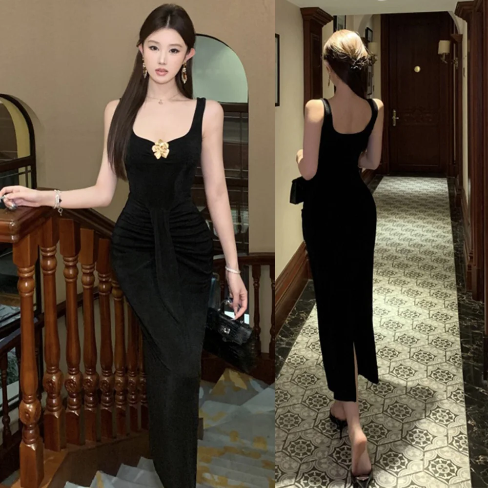 Summer Temperament Elegant Women's Sexy Draped Party Hollow Casual Bodycon Maxi Dresses Simple Short Sleeve Regular Solid Color