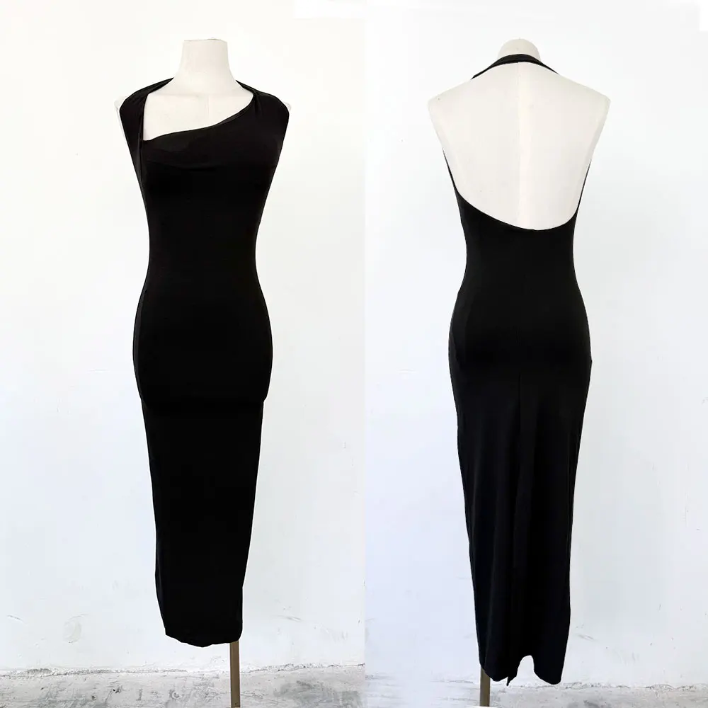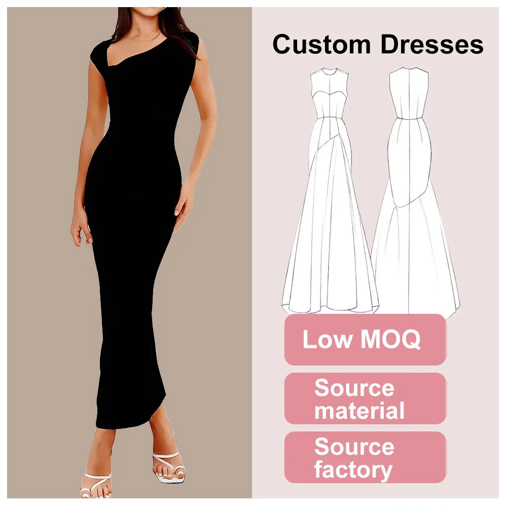 Korean Dress Style Wholesale Custom Women Elegant Black Dress Fashion Ladies Clothing Summer Casual Maxi Fit Club Dresses