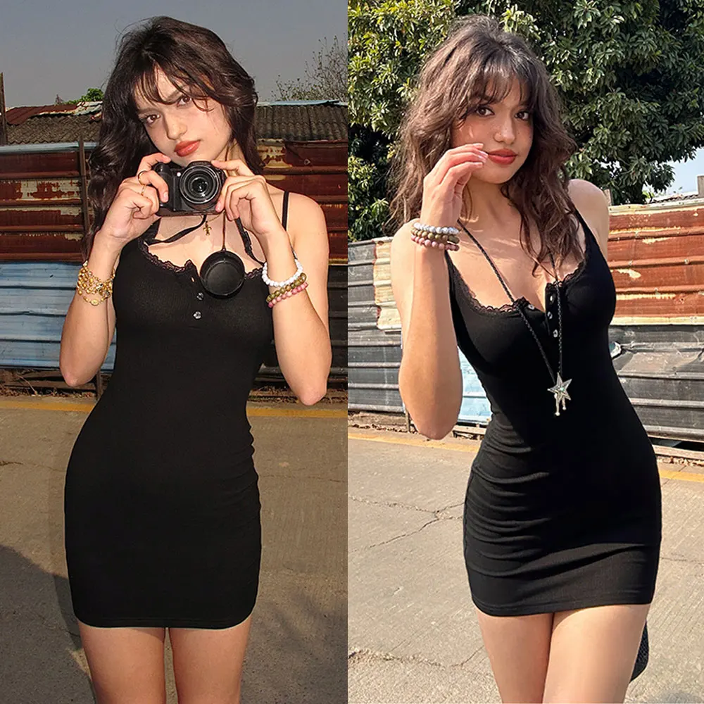 Custom Wholesale Ladies V-Neck Button Front Knit Rib Bodysuit Tight Mini Club Dresses Mini A-Line Dresses Parties Club Nights