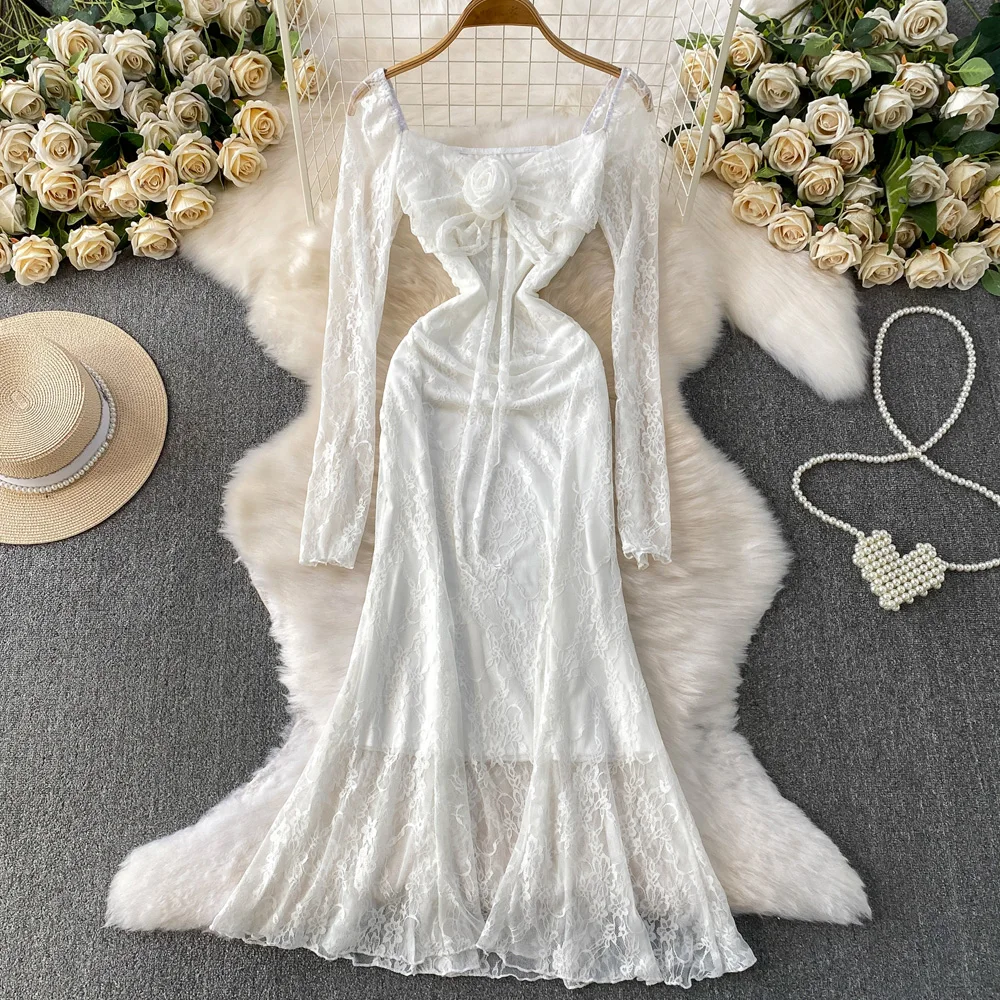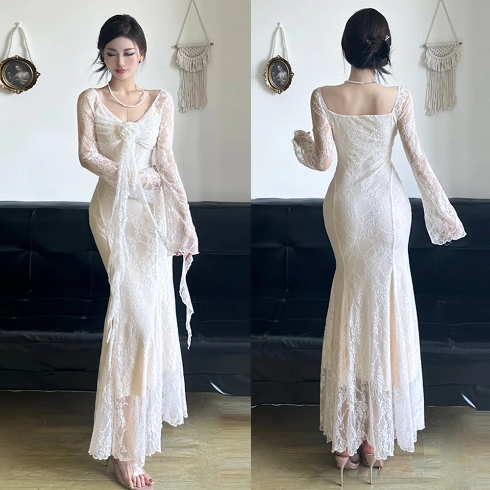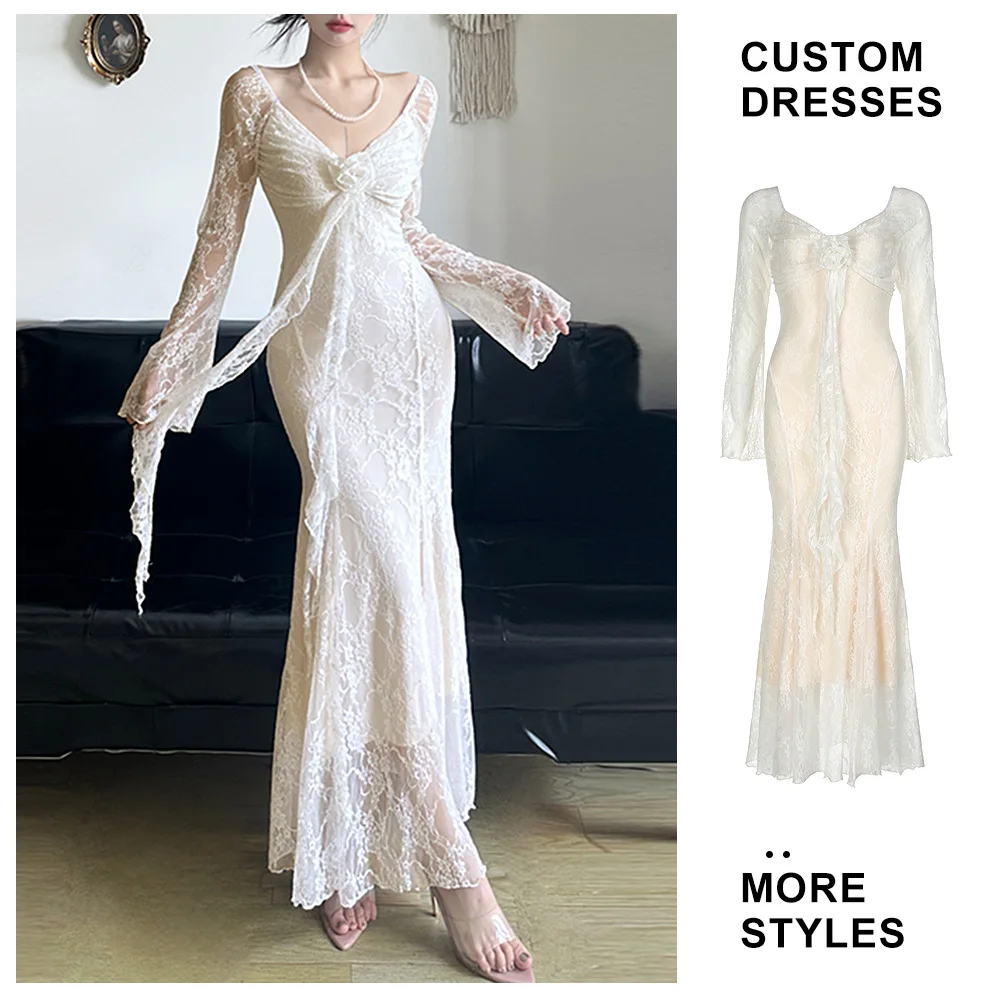 Custom High Quality Long Sleeves Womens Lace Evening Dress Bodycon Dresses for Ladies for Party Maxi Sexy Pad Evening Club