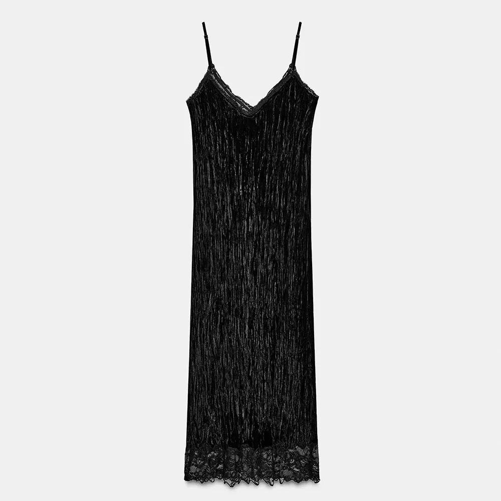 ZYHT 21541 Wholesale Crew Neck High Waist Casual Dresses Elegant Lace Velvet Mermaid Hem Ruched Long Sleeve Dresses for Women