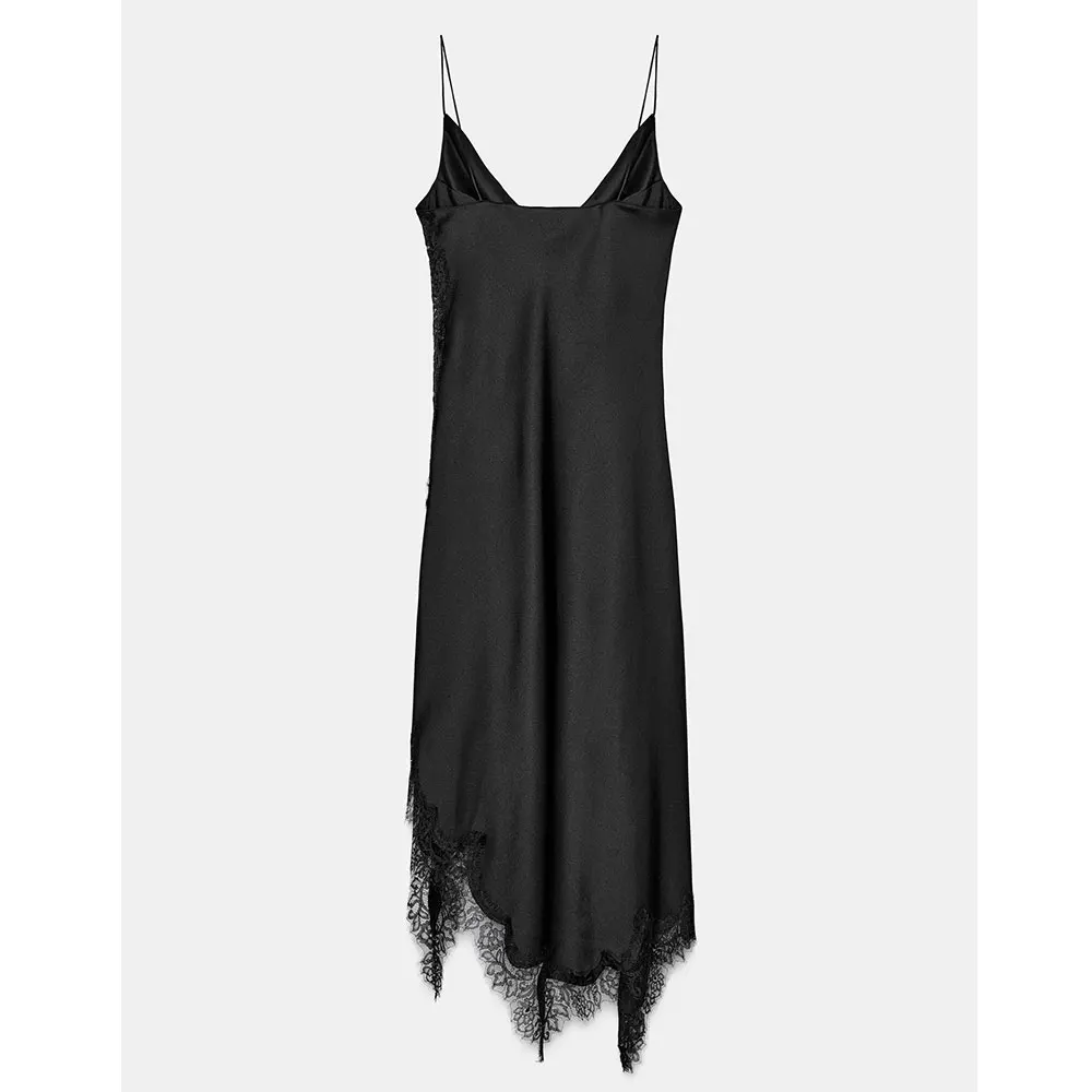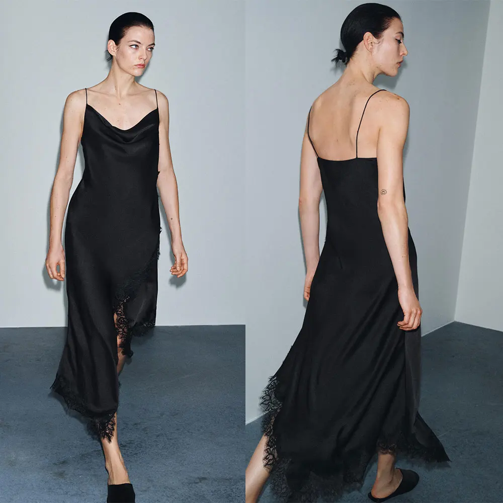 Custom Winter New Women's Series Casual Anti-Static Satin Texture Lace Sexy V-Neck Suspenders Elegant Female Midi Long Dress