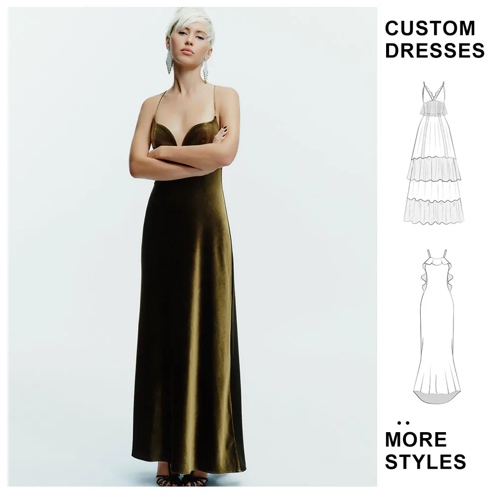 Custom Sexy Velvet Bodycon Slip Maxi Dress 2025 Elegant Evening Backless Strap Long Suspender Sleeveless Dresses Clothing