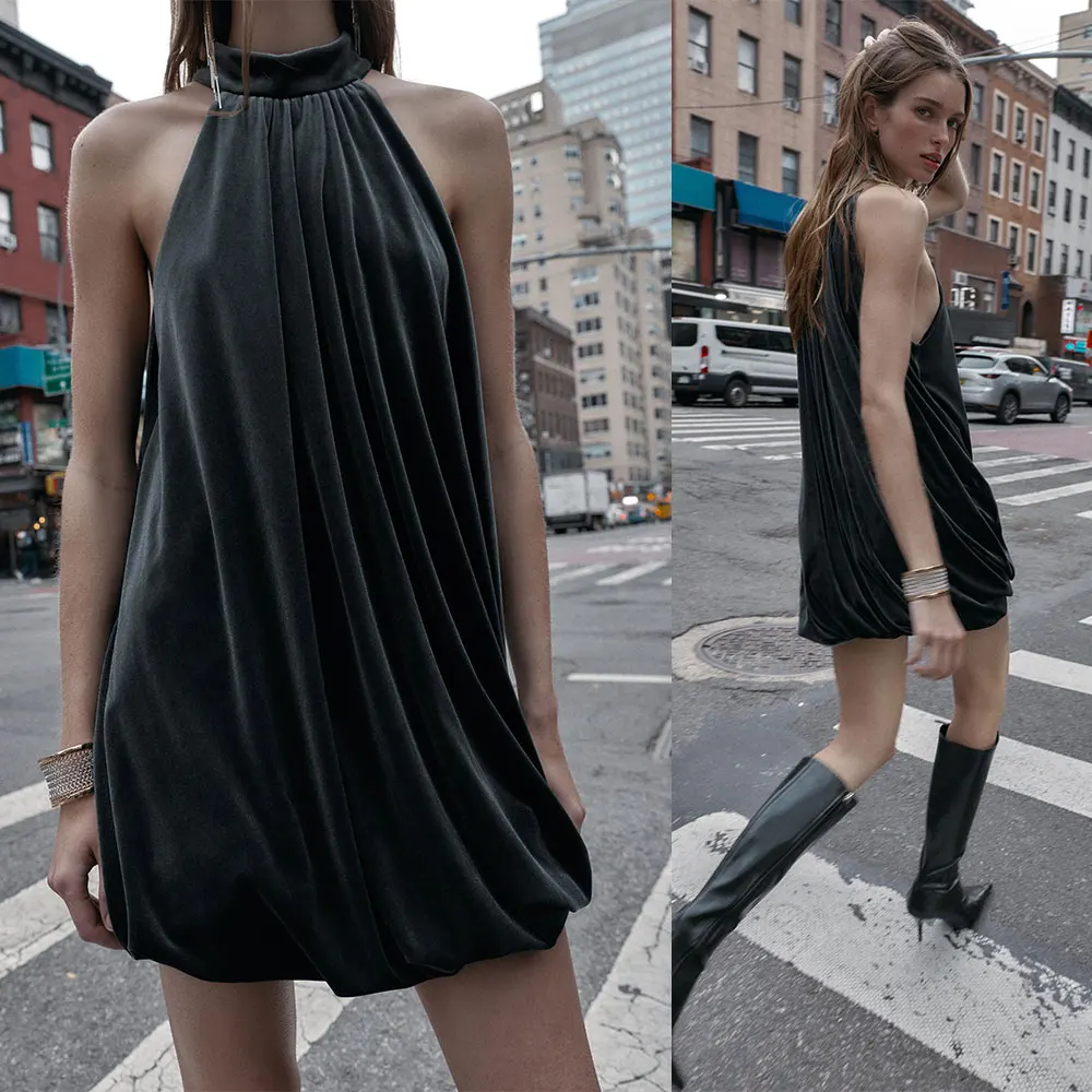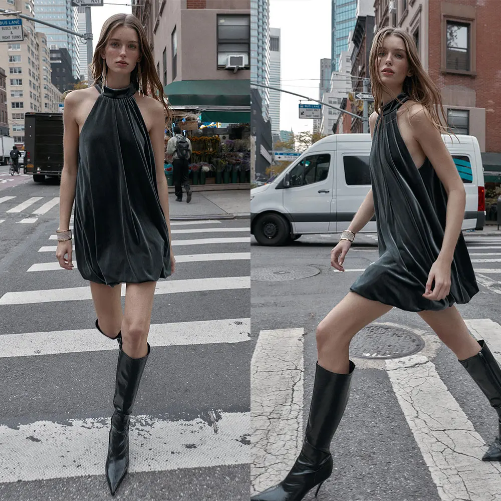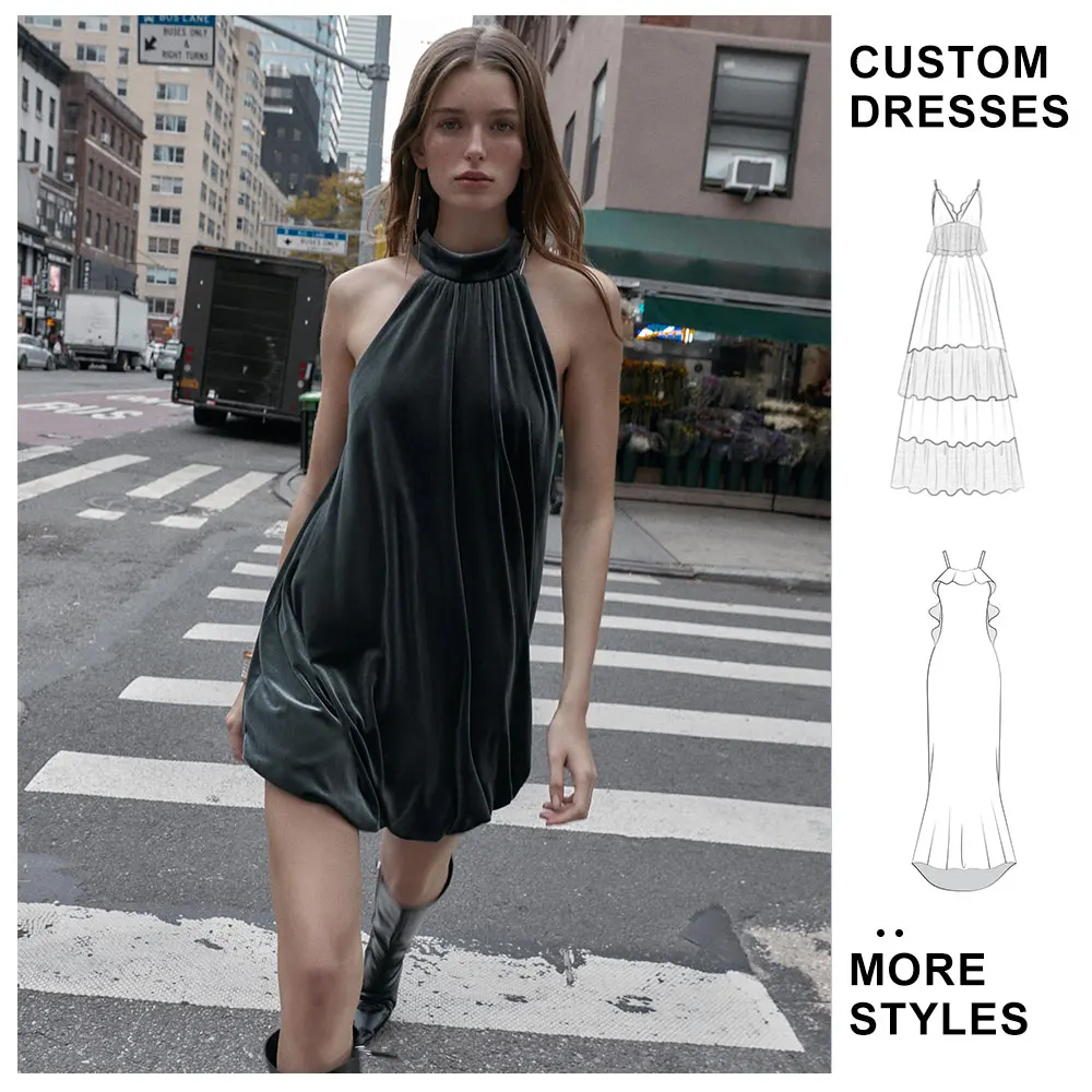 Custom OEM 2025 Winter New Casual Anti-Static Women's Sleeveless Short Dresses Velvet Balloon Bodycon Dress Ball Gown