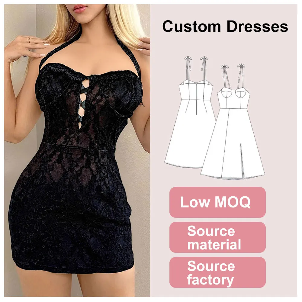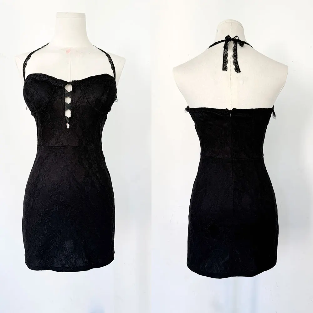 Women Clothing Club Dresses Wholesale Custom Elegant Lace Deep V Neck Mini Summer Casual Black Bodycon Party Apparel Empire ODM