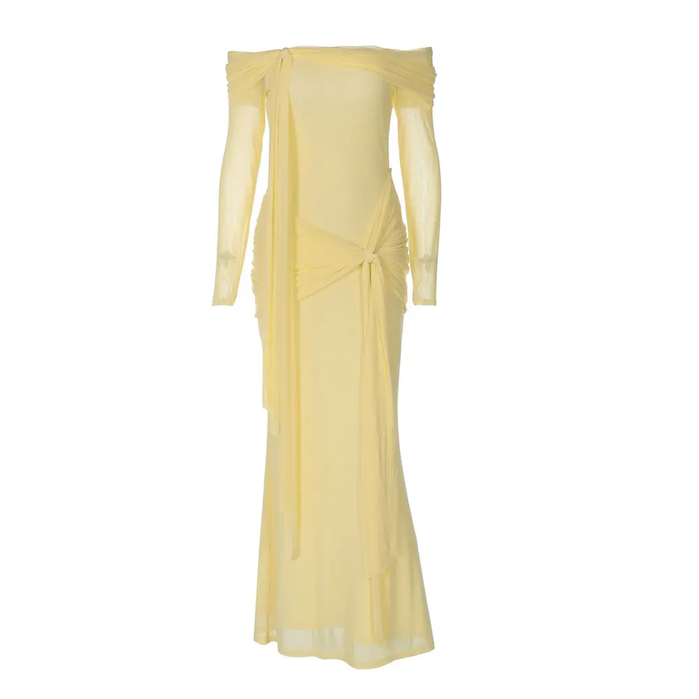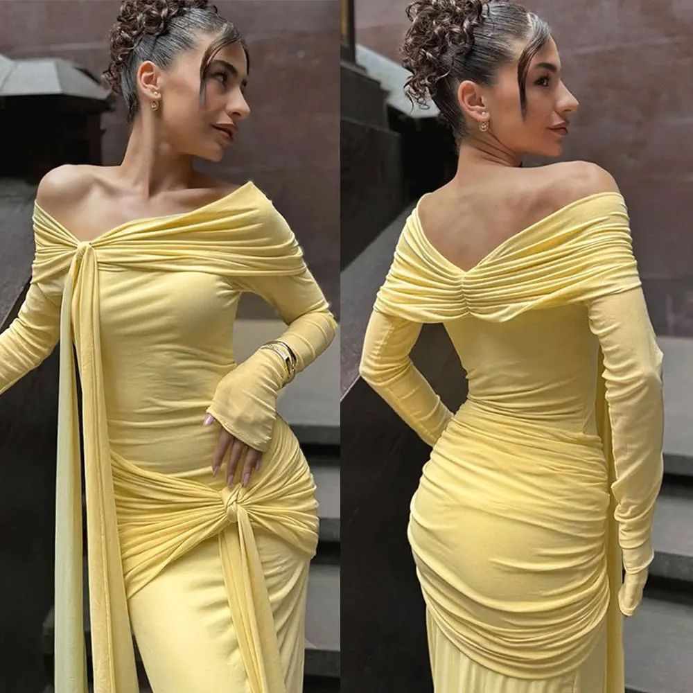 Custom Women Dress Maxi Dress Sexy Off Shoulder Dress Women Yellow Beach Dress Summer Ladies Vacation Casual Dresses