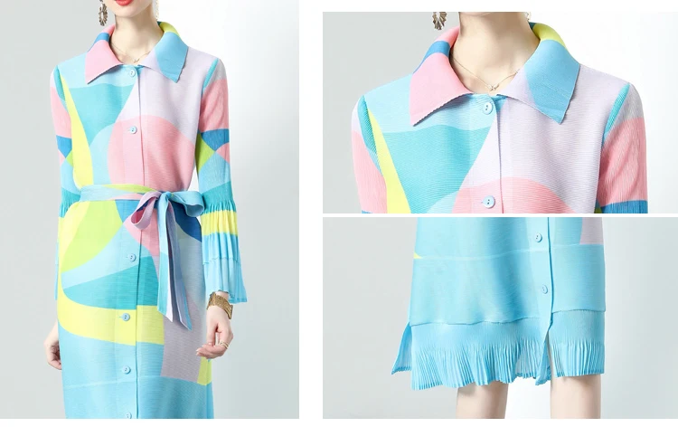 Miyake Vintage Plain Dyed Natural Pleated Floor-Length A-Line Dress 2023 Summer Factory Outlet Women Casual Printed Loose