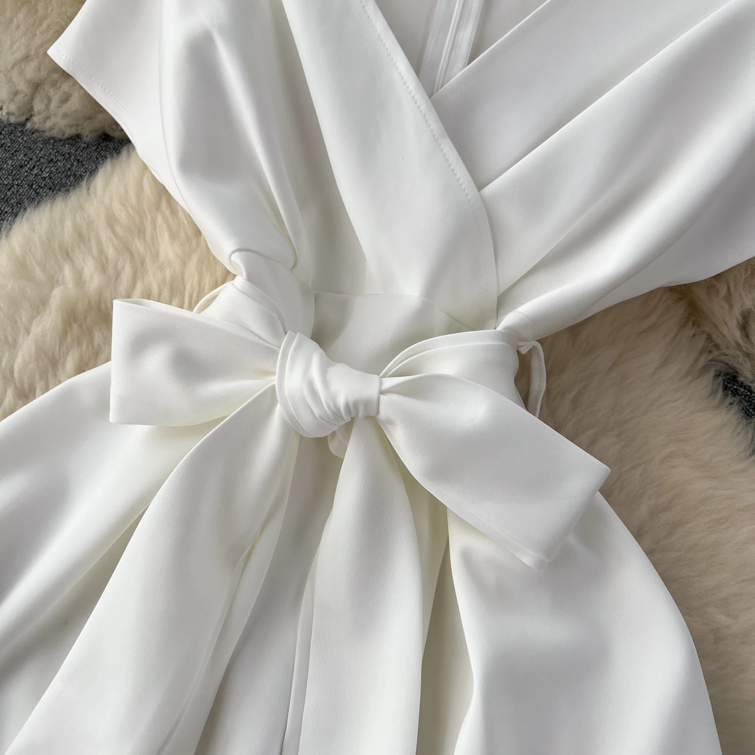 Custom High Quality Party Dresses Women Elegant Sleeveless V-neck A-line Midi White Dress Women's Clothing Plus-size Dress