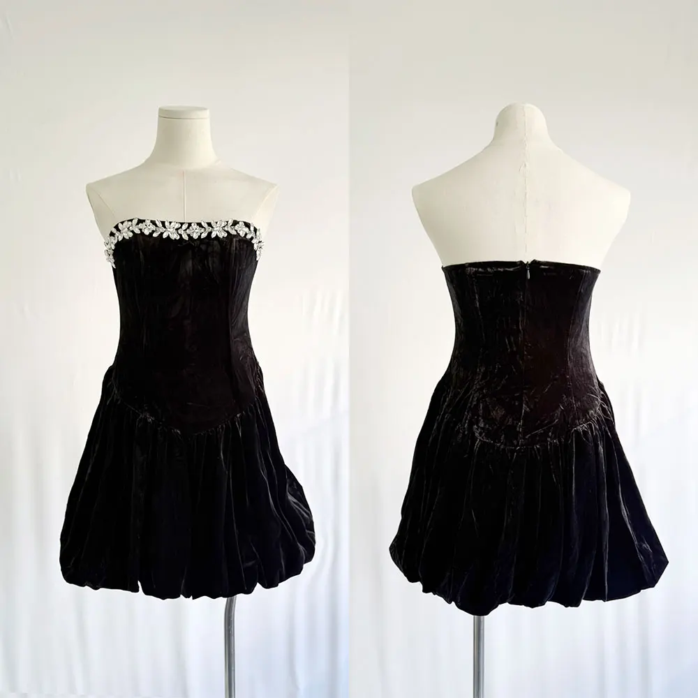 Custom Dinner Party Diamond High Waist Black Women's Party Dresses Strapless Evening Gown Bow Tight Short Elegant Sexy Dress