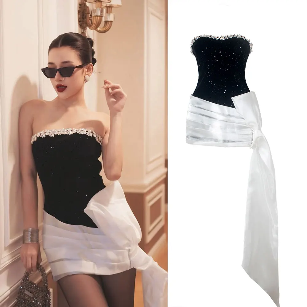 Custom Wholesale High Quality Banquet Birthday Host Sexy Strapless Empire Top Bandage Light Luxury Rhinestone Evening Dress