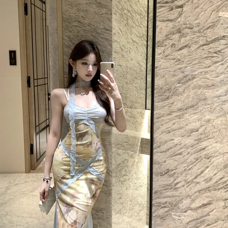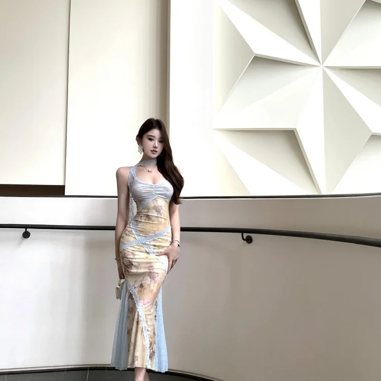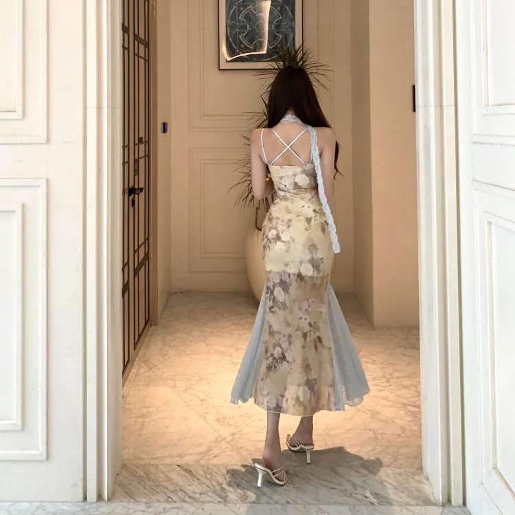 Women Trend Fresh Floral Slim-Fit Sheath Dress Bodycon Long Maxi Party Dress for Women