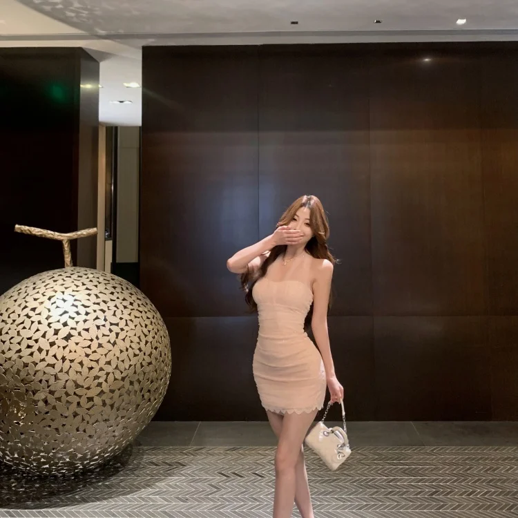 Sleeveless Women's Mini Dresses Hanging Neck Suspender Dress Fashionable Versatile Strapless