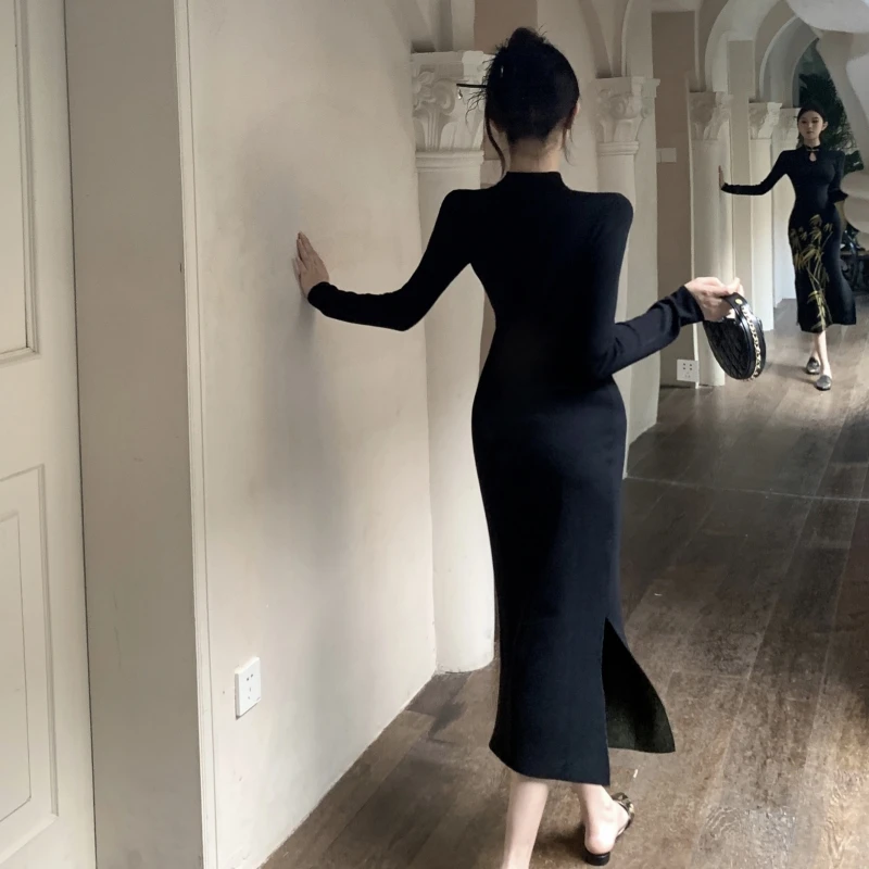 ZYHT 21541 Wholesale Crew Neck High Waist Casual Dresses Elegant Lace Velvet Mermaid Hem Ruched Long Sleeve Dresses for Women