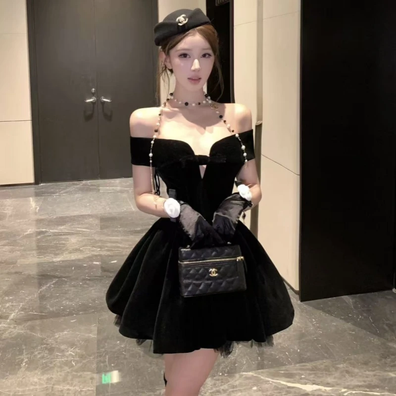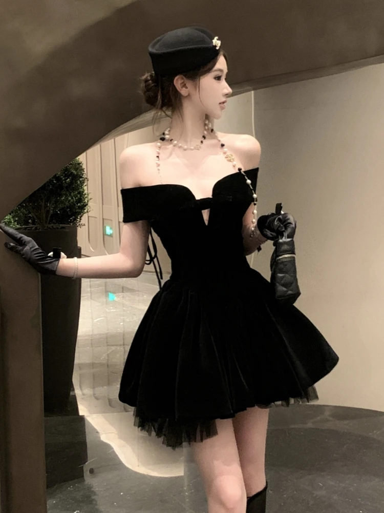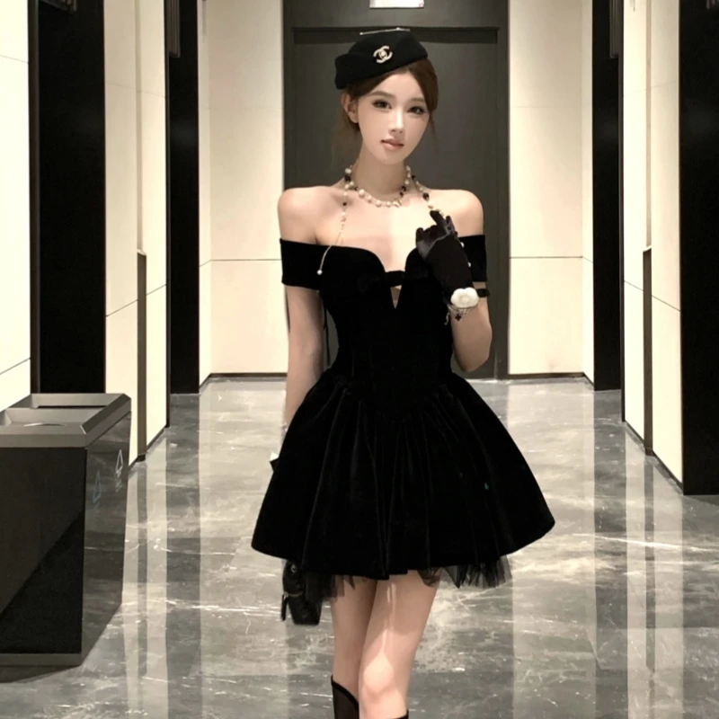 Mini Gold Velvet Evening Dress for Women: Sleeveless Strapless Design, Elegant Short Gown for Dinner/Reception