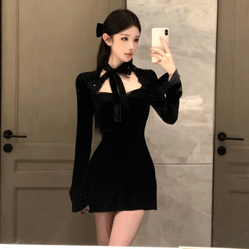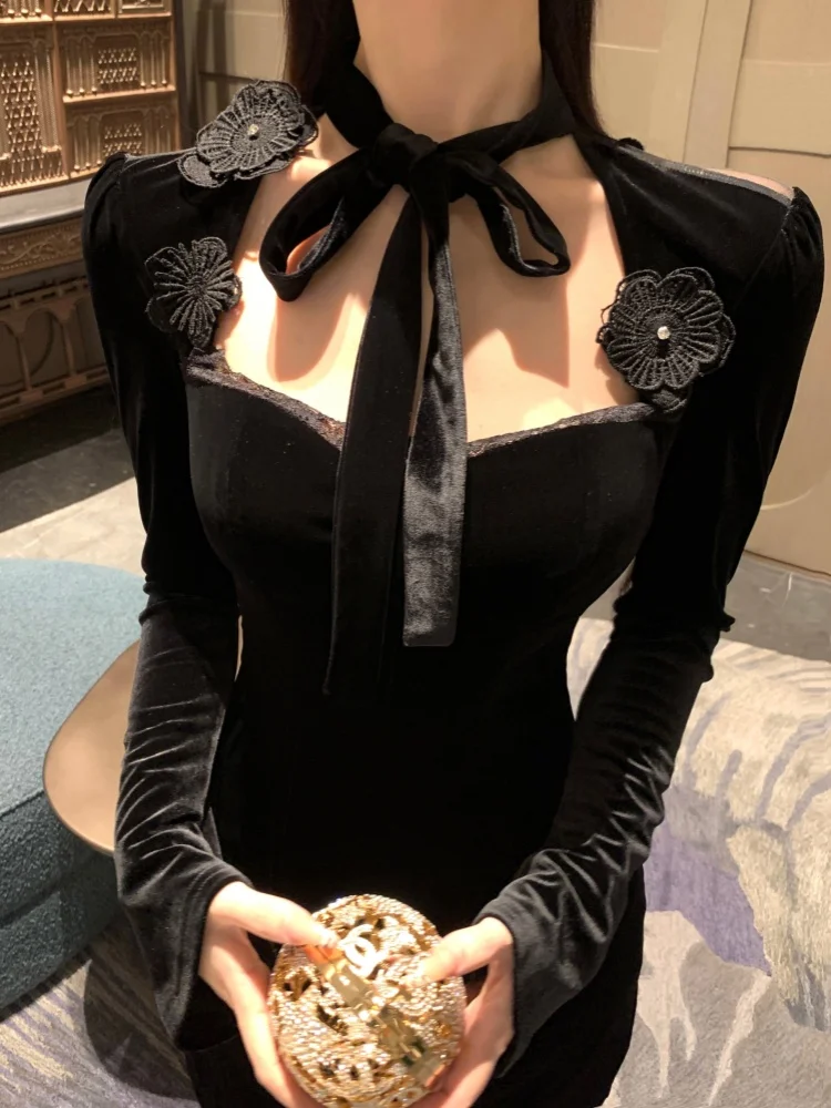 Women's Modern Elegant Empire Evening Party Dresses Sexy Tight Fit New Fashionable Solid Color Square Neck Mini Velvet Diamond