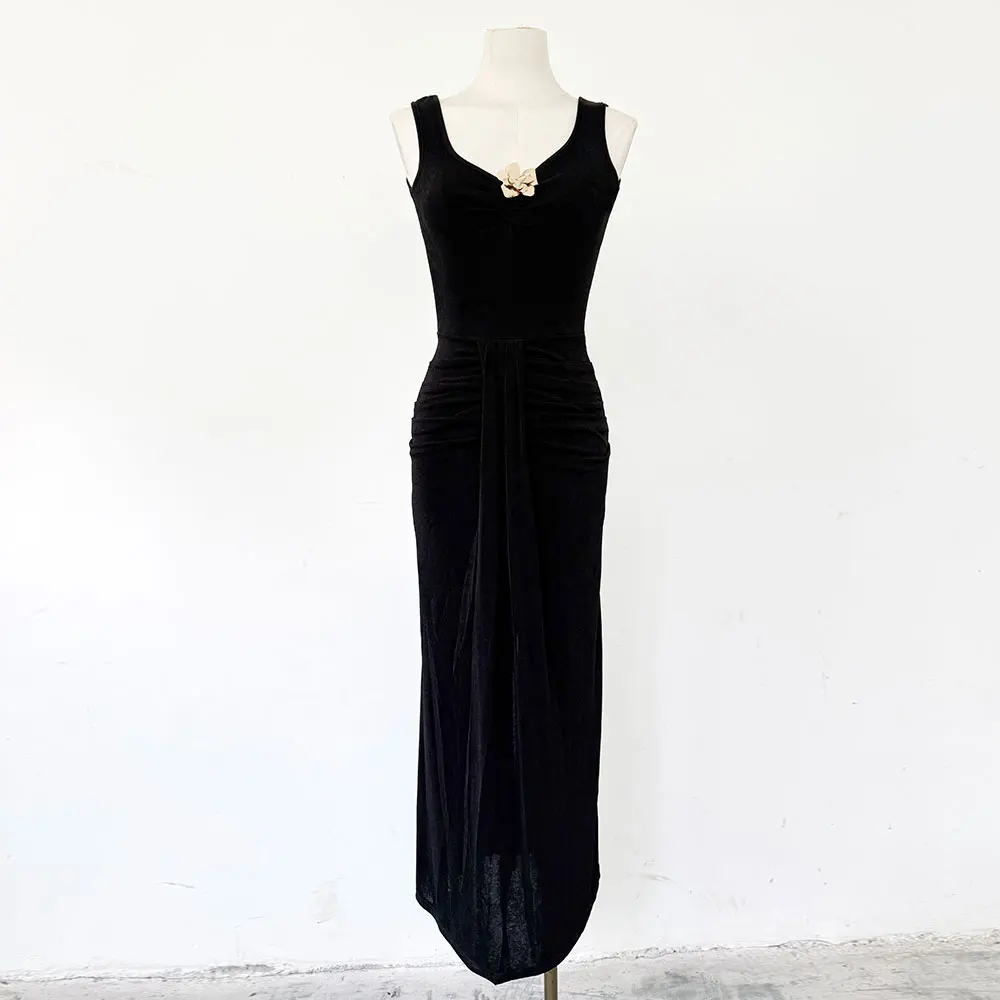 Wholesale Ropa De Mujer Summer Elegant Casual Maxi Dresses Women Square Collar Slit Summer Halter Bodycon Dress