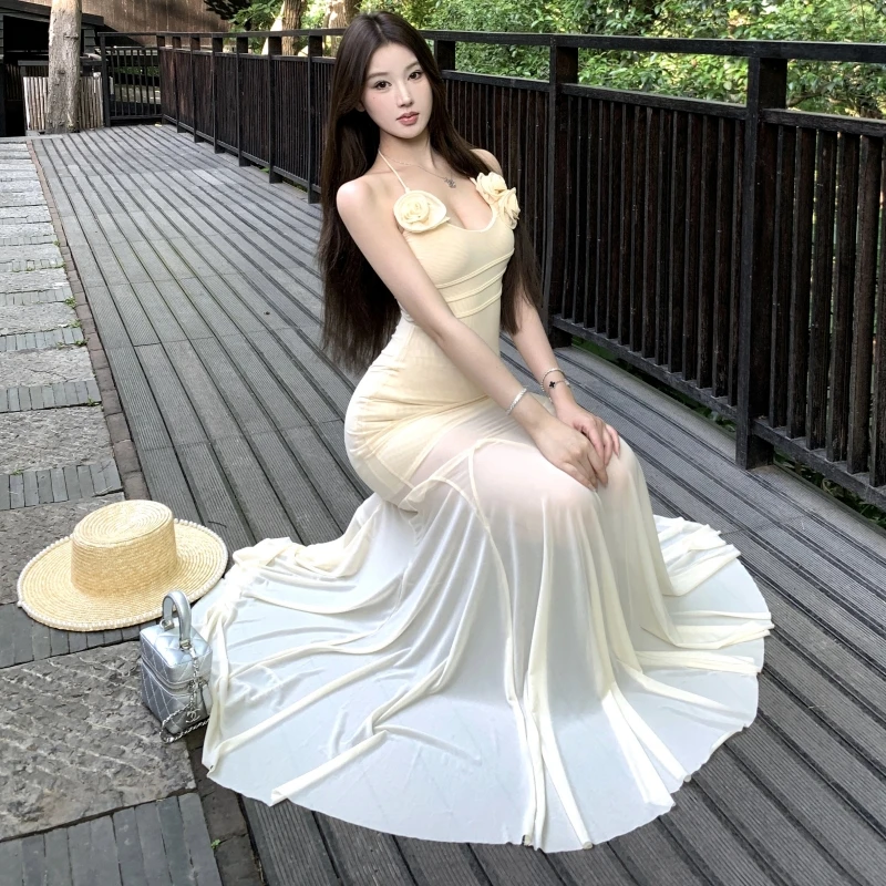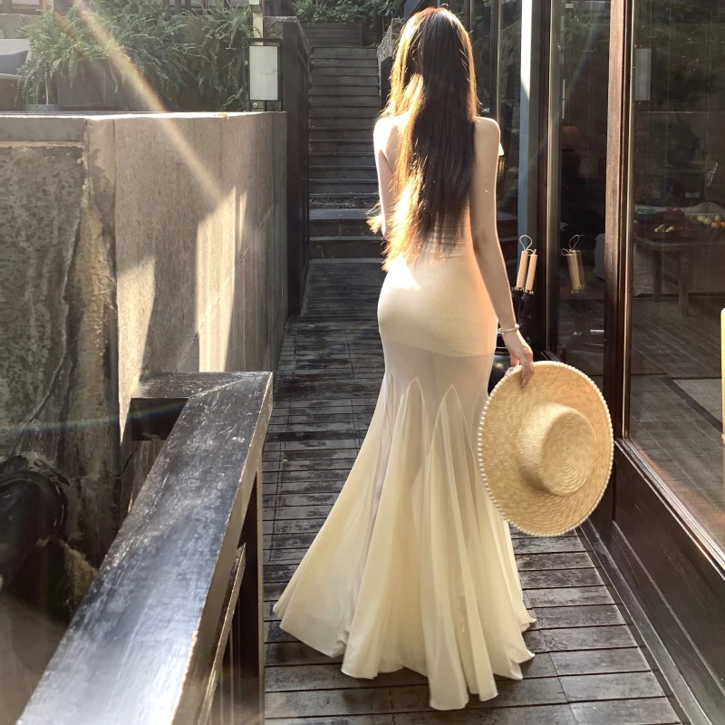 Elegant Women's Summer Evening Dresses Modern Halter Strapless Design Empire New Fashionable Solid Color Tight Fit Clothing