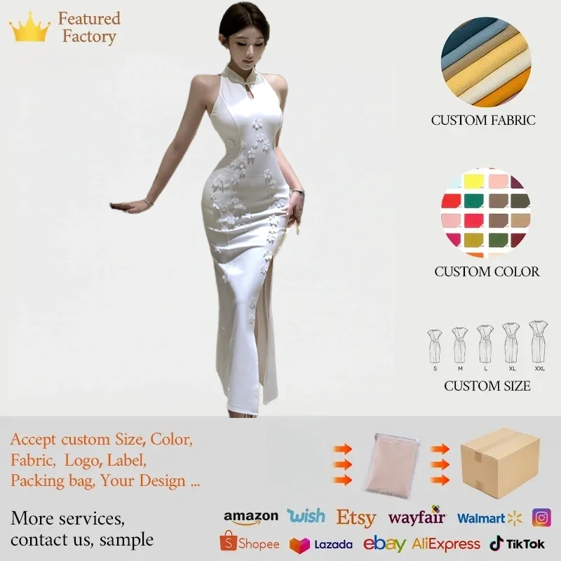 Women's Elegant Summer Chinoiserie Dress Hot Sexy Casual Clothing for Formal Occasions
