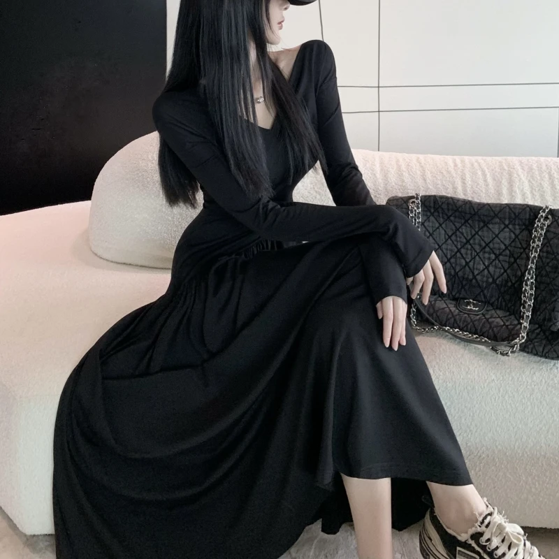 Women's Casual Long-Sleeve V-Neck Knit Dress - Soft Skin-Friendly, Versatile for Spring & Autumn Daily Wear
