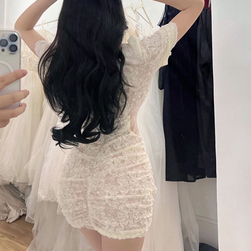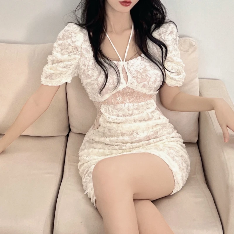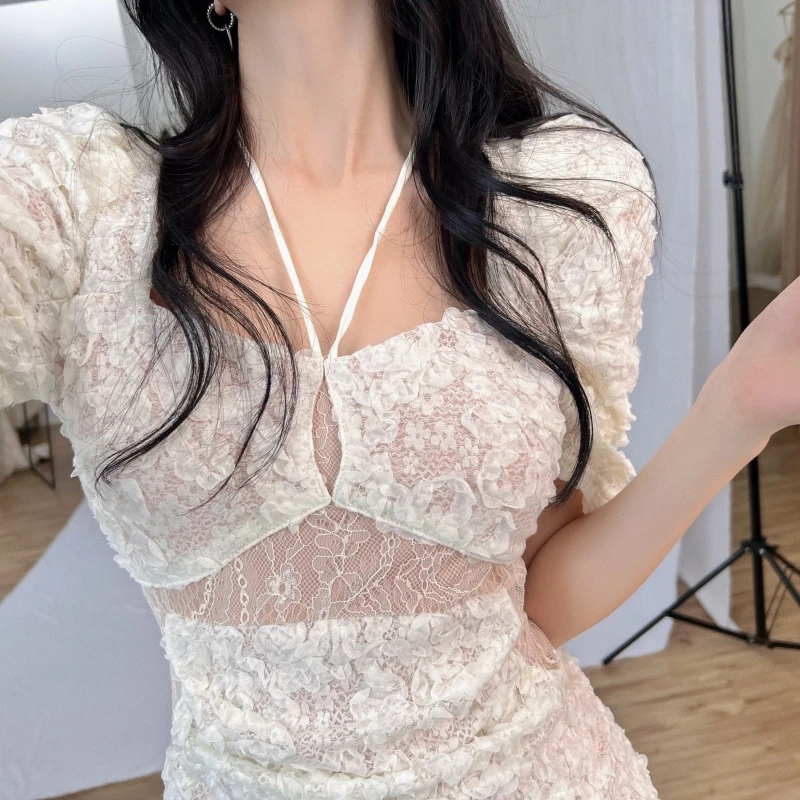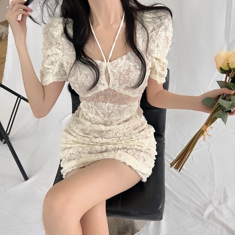 Elegant Modern Empire Evening Dresses for Women Sexy Tight Fit Mini Halter Lace Beach Clothing Young Ladies' Fashion