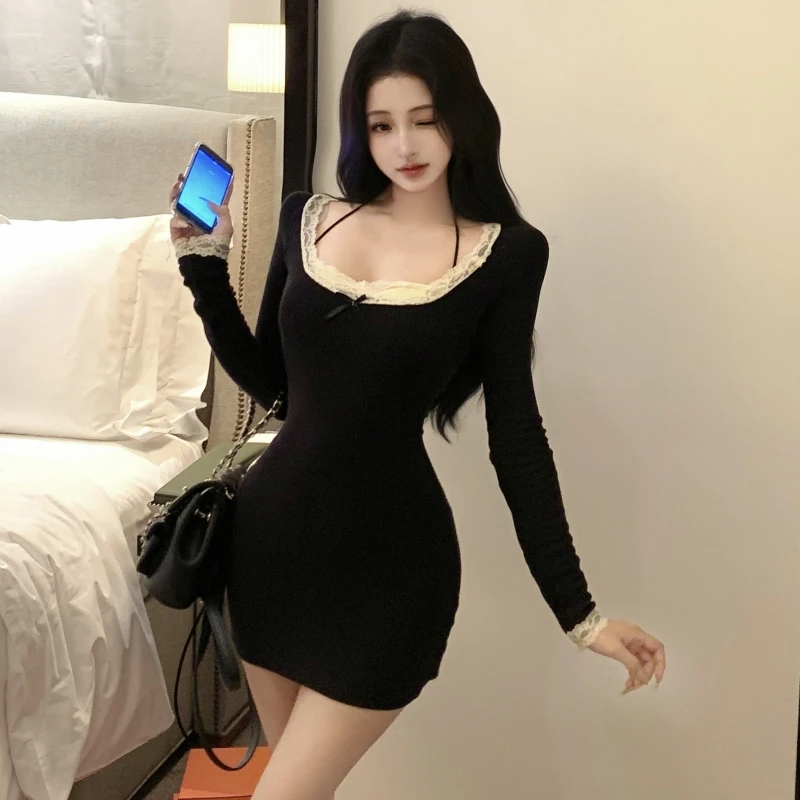Autumn and Winter Knit Long Sleeve Short Slim Sexy Dress