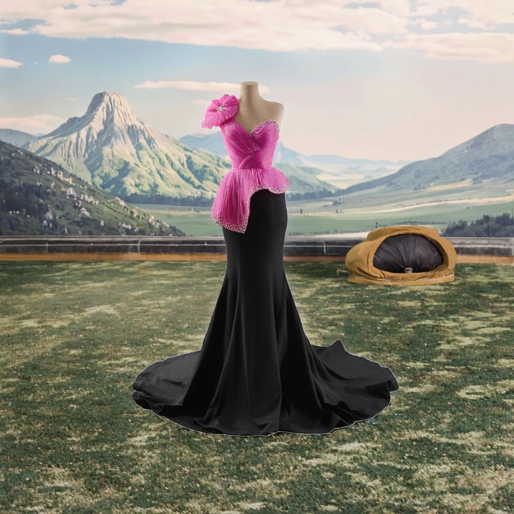 Customize Unique One Shoulder Slim Mermaid Floor-Length Evening Dress with Chapel Train and Plain Dyed for Party
