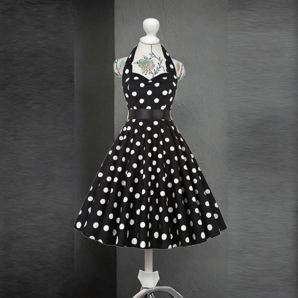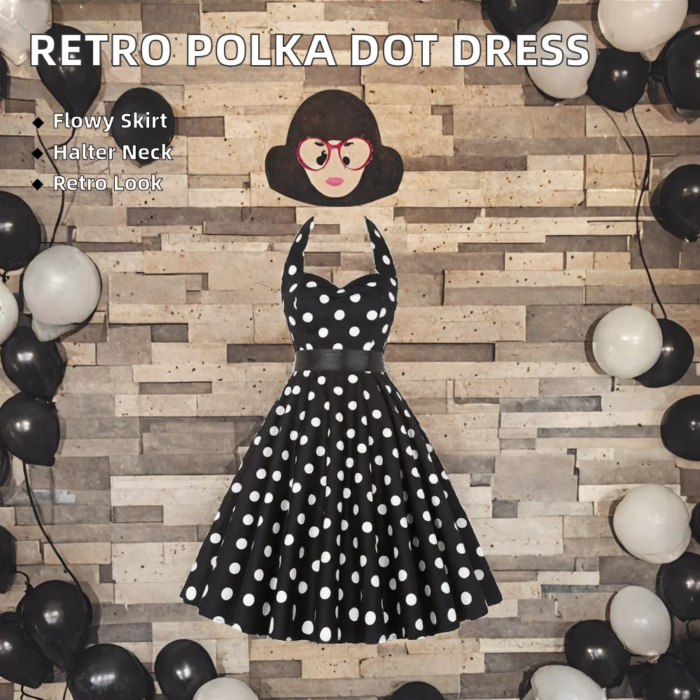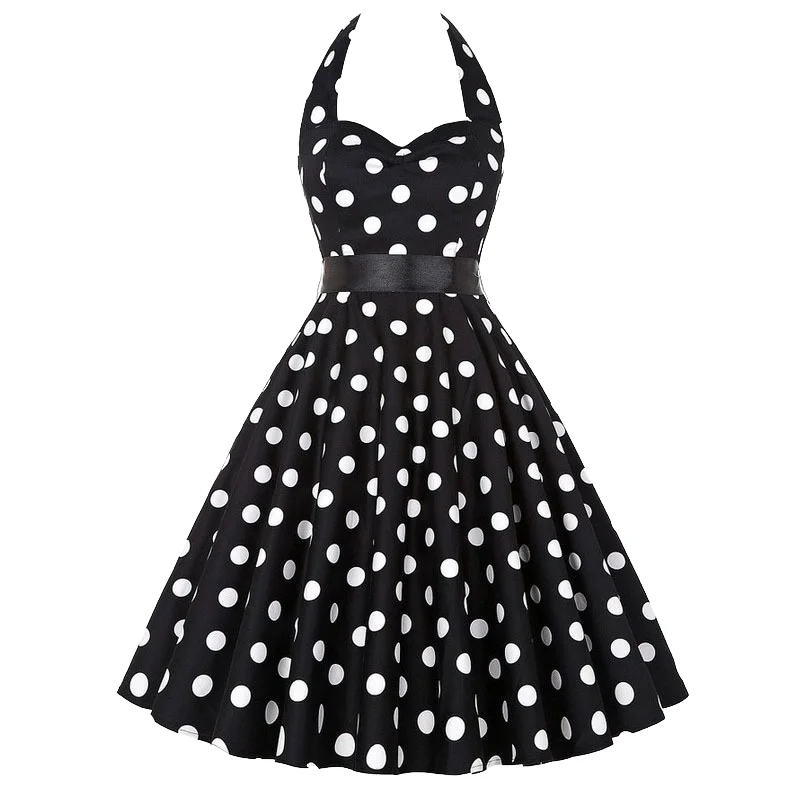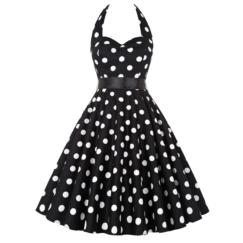 Customize Halter Knee-Length Summer Print Vintage 50s 60s Pin-Up Rockabilly Dress Retro Floral Hepburn Valentine's Day Party