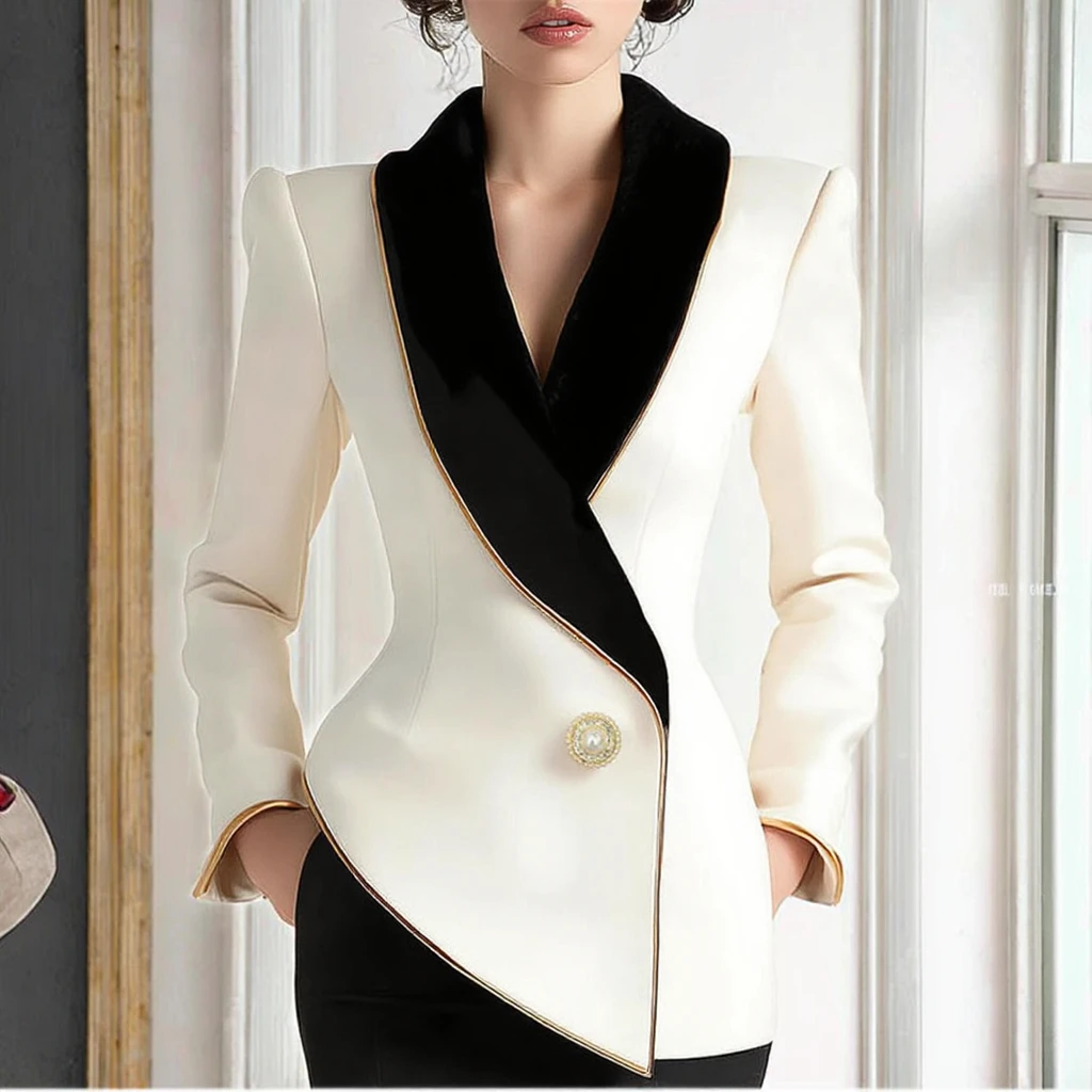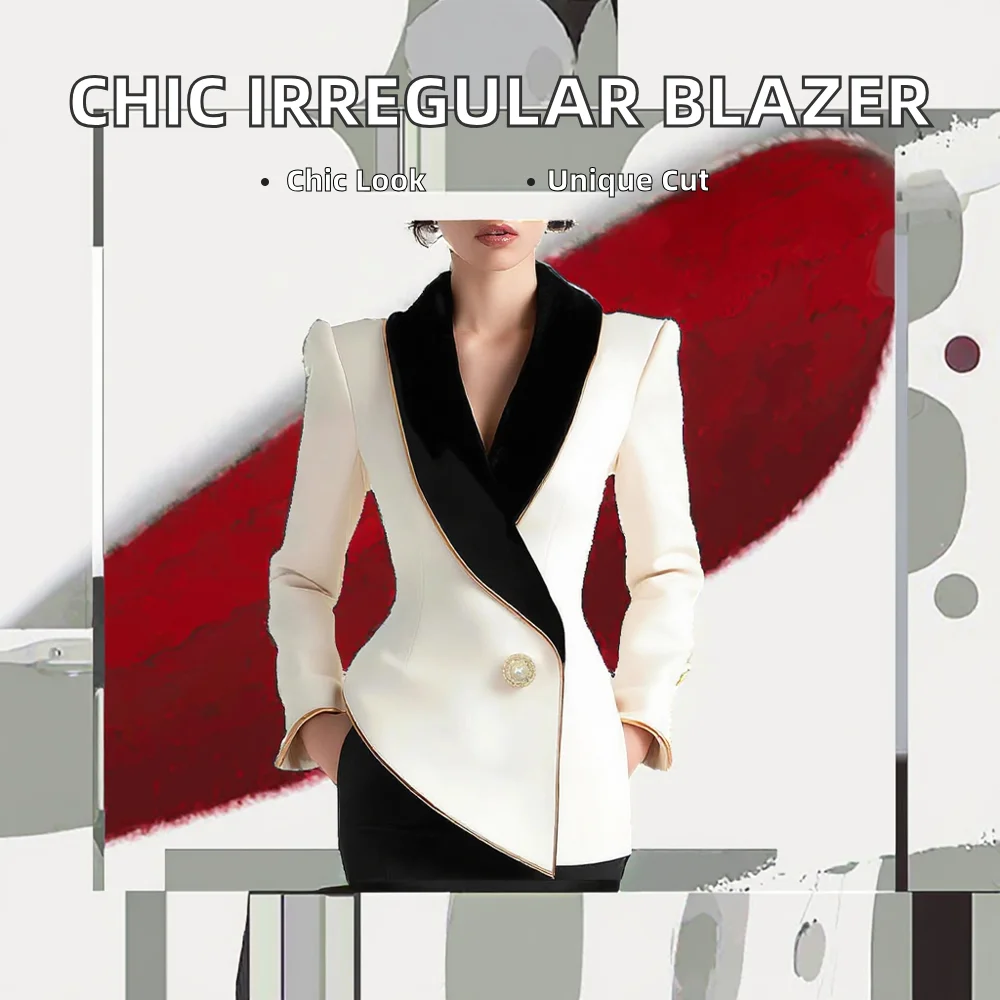 Customize Irregular Cut Women's Suit Jacket-Elegant Solid Lace Single Button Long Sleeve Blazer for Ladies
