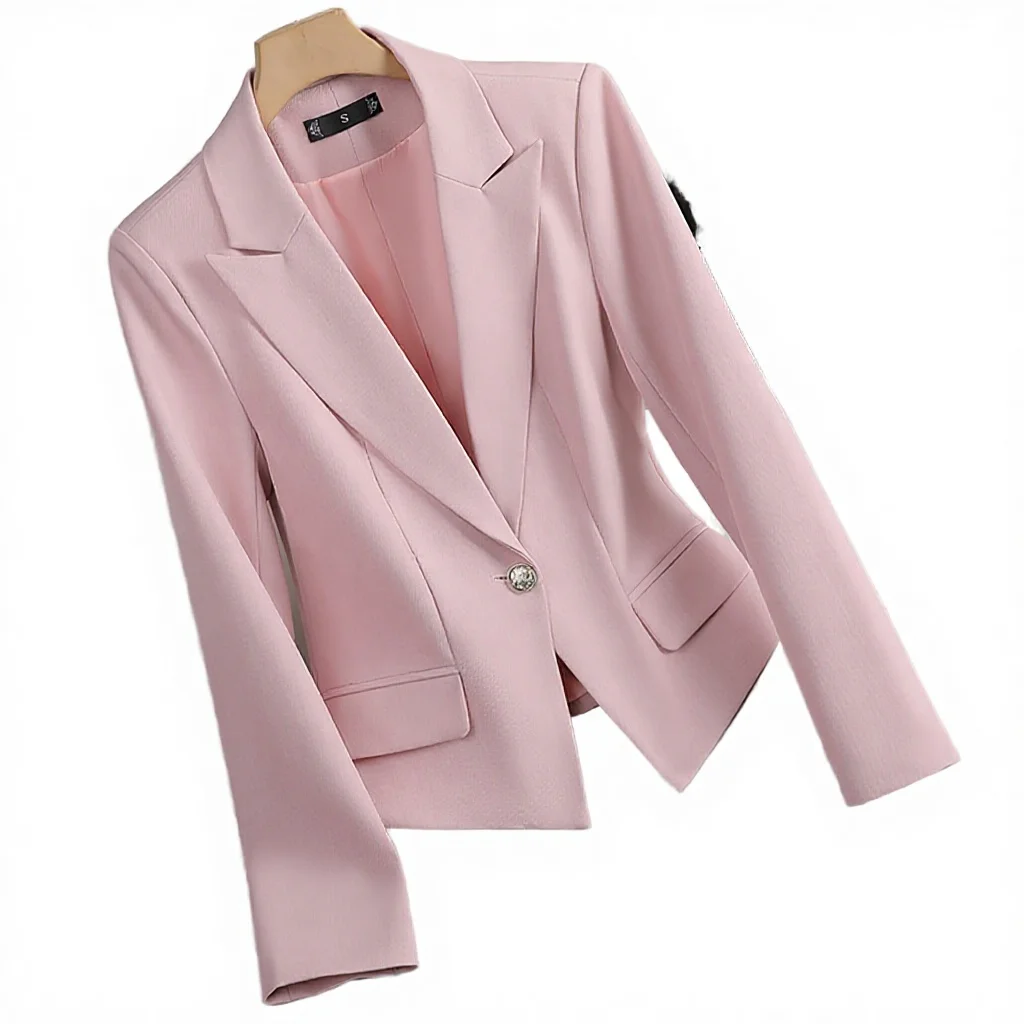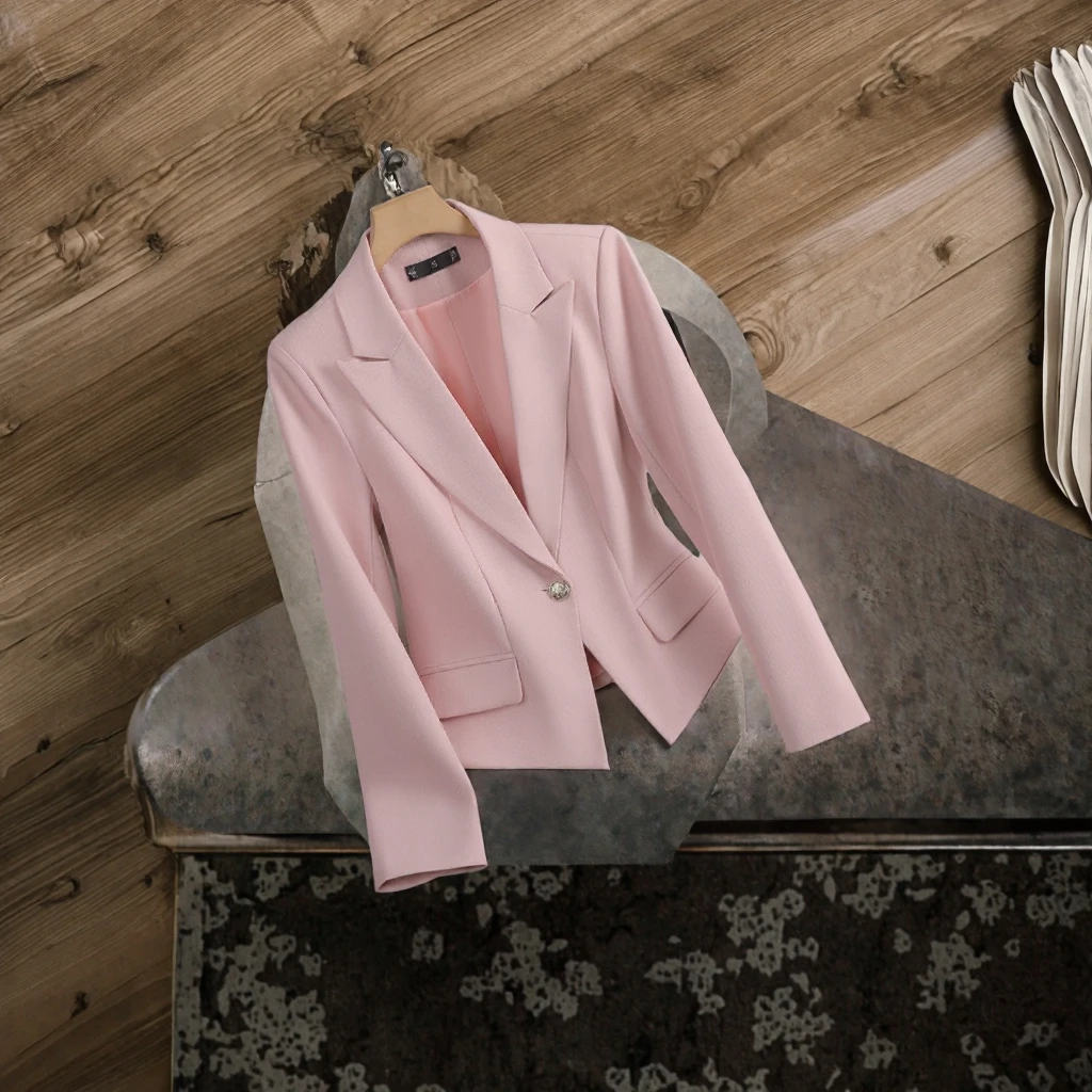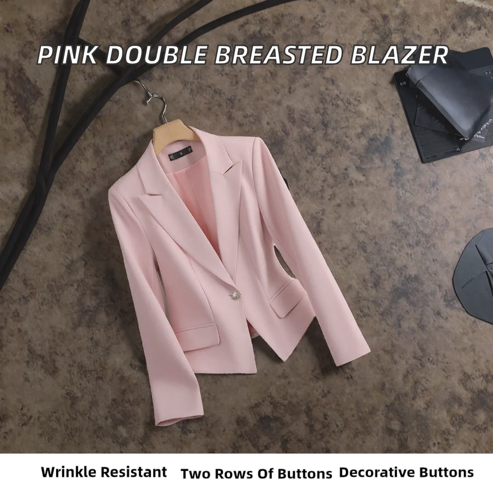 Customize Professional Women's Solid Pink Blazer Anti-Wrinkle Double Breasted Button Spring Autumn XL Size