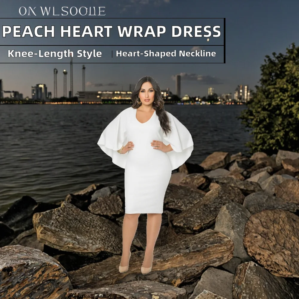 Customize New Short Sleeve Solid Peach Heart Neck Fashion Wrap Hip European American Empire Waist A-Line Formal Plus Size Dress