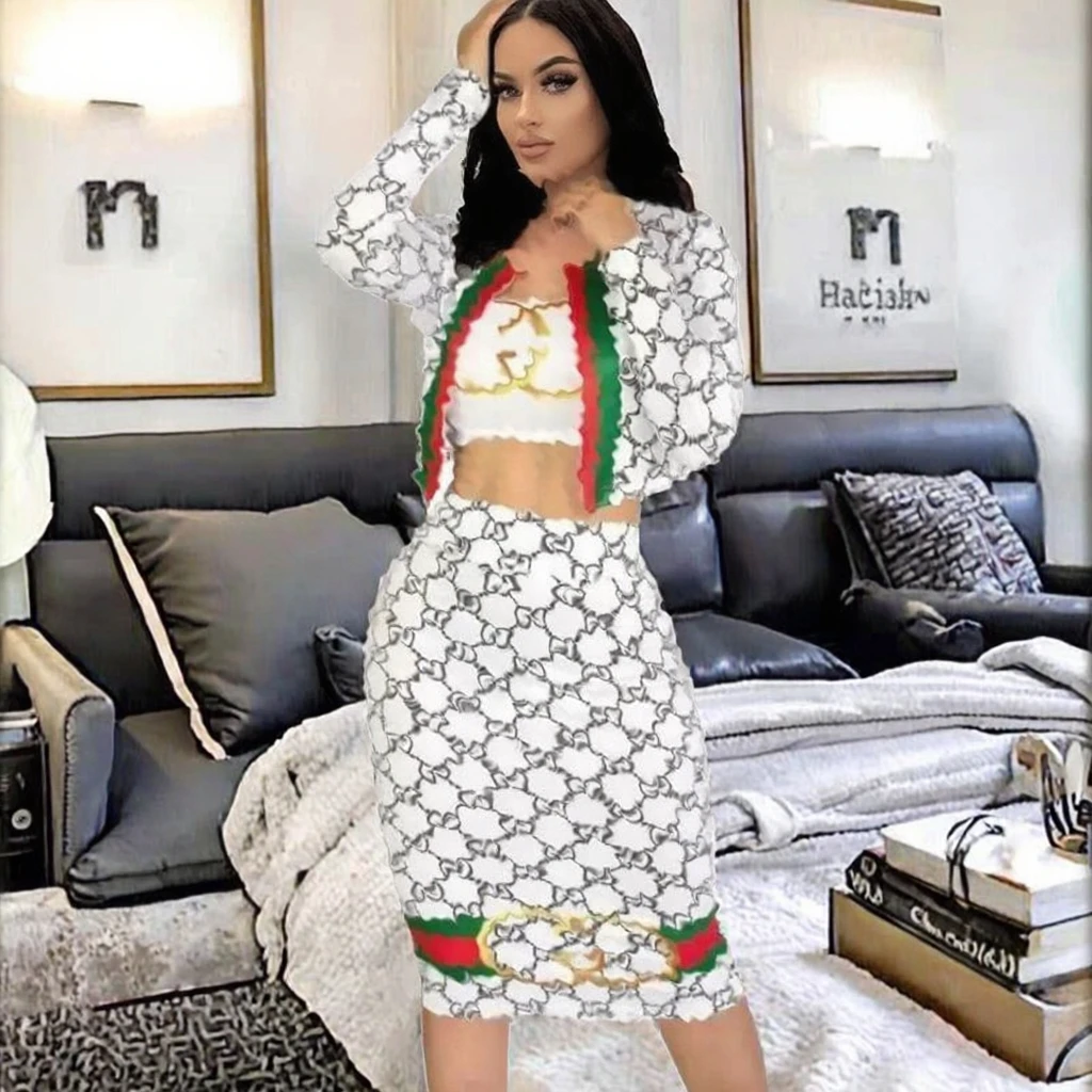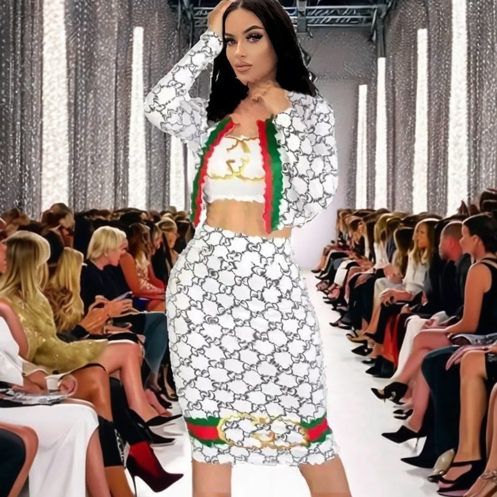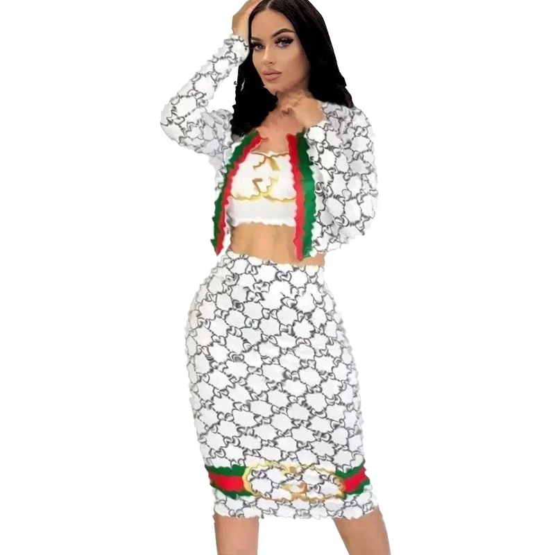 Customize Brand Famous Designer Women's Vintage Woven Print Polyester Sexy Skirt and Top 3-Piece Set for Wear Minimum Order 2pcs
