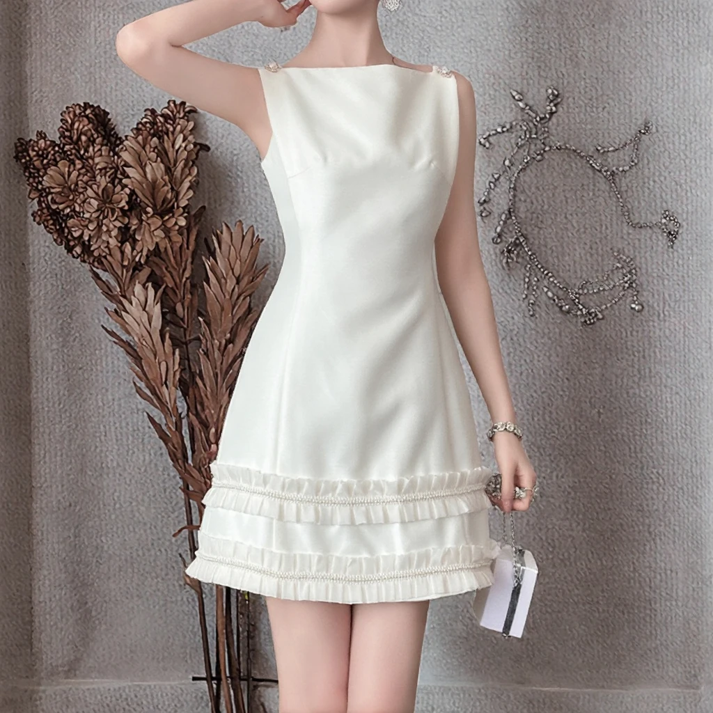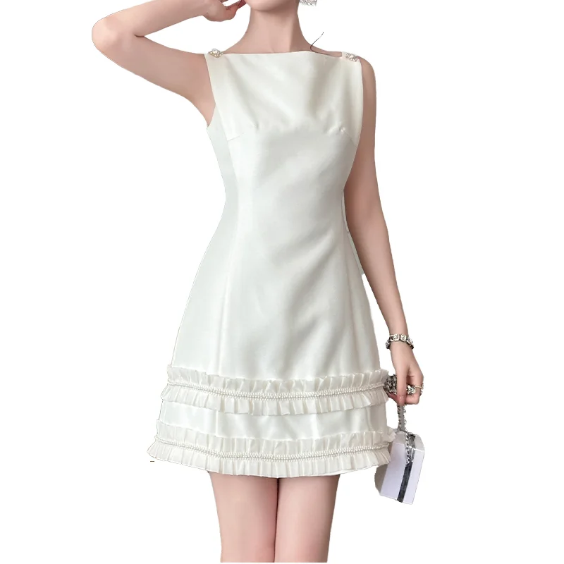 Customize Sexy Casual Natural Waist A-Line Breathable Summer Sleeveless Backless Ruffles White Dress Women