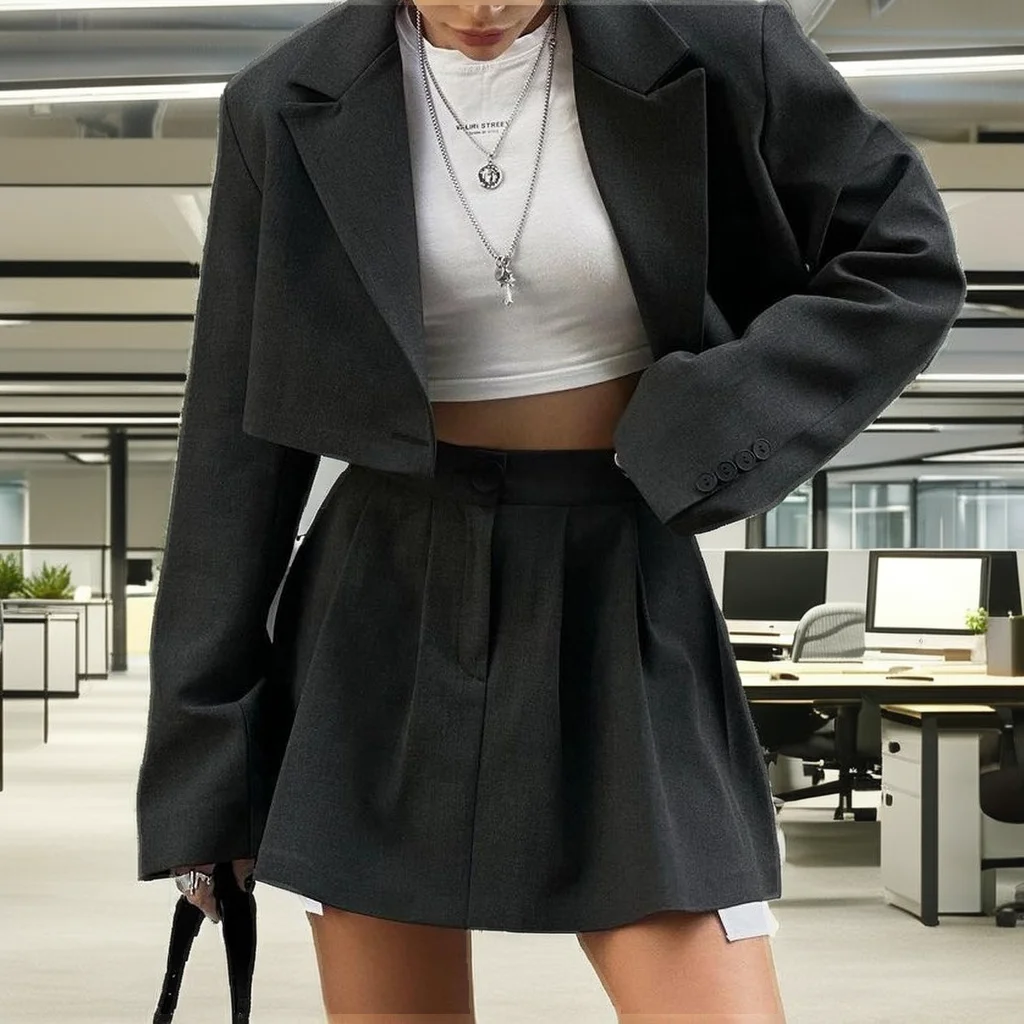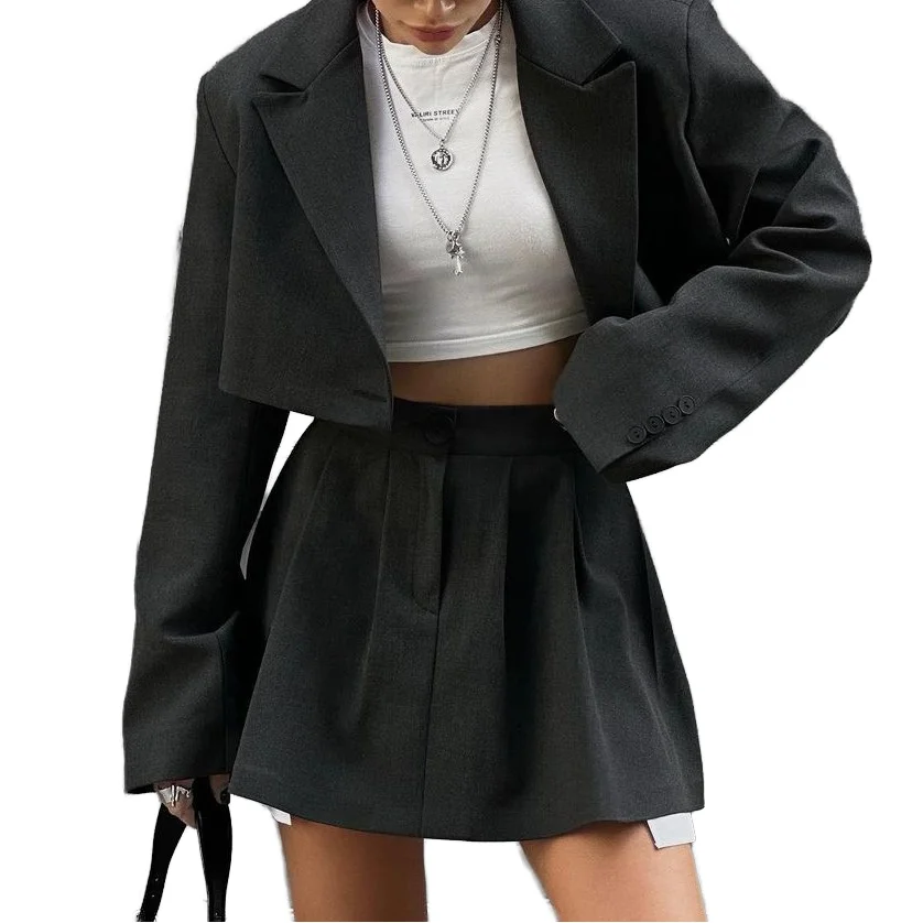 Customize Fashion Formal Women Blazer Skirts Suit Elegant Solid Long Jackets Mini Pleated Skirts Two Pieces Set Female Clothes