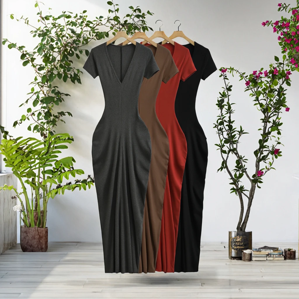 Customize Summer New Fashion Spice Girls Square Collar Solid Eco-Friendly Bodycon Maxi Dress Slim-fit Casual Chic Vestidos